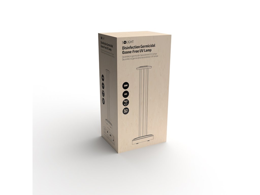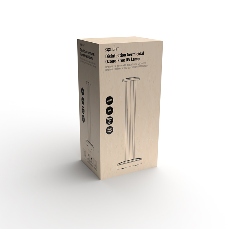 Táto prenosná bezzónová germicídna lampa poskytuje účinnú dezinfekciu domácností, kancelárií, škôl a iných priestorov pomocou UV-C žiarenia. Neprodukuje ozón, je až 3000x rýchlejšia ako chlór a 25x účinnejšia ako kyselina chlórová. Odstraňuje vírusy, baktérie, plesne a roztoče na ploche až 40 m2. Ponúka časovač 15/30/60 minút, diaľkové ovládanie s dosahom 15 m a bezpečnostné oneskorené zapnutie. Má kremíkovú trubicu, výkon 38 W a životnosť lampy až 5 000 hodín. Napájanie 230 V/50 Hz, dĺžka kábla 1,2 m. Farba čierna, hmotnosť 1,1 kg.