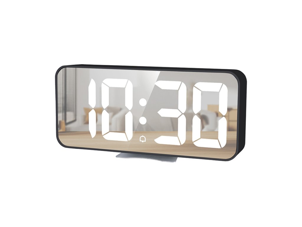 - zrkadlový LED displej zobrazujúci čas alebo teplotu (možnosť prepínania zobrazenia)