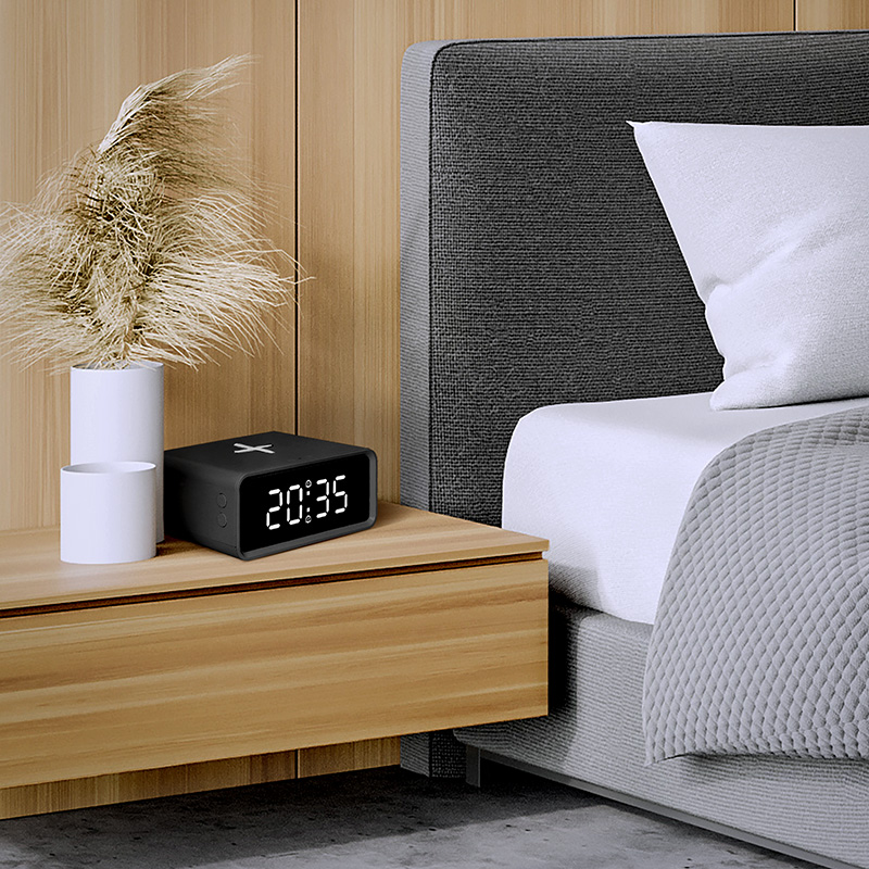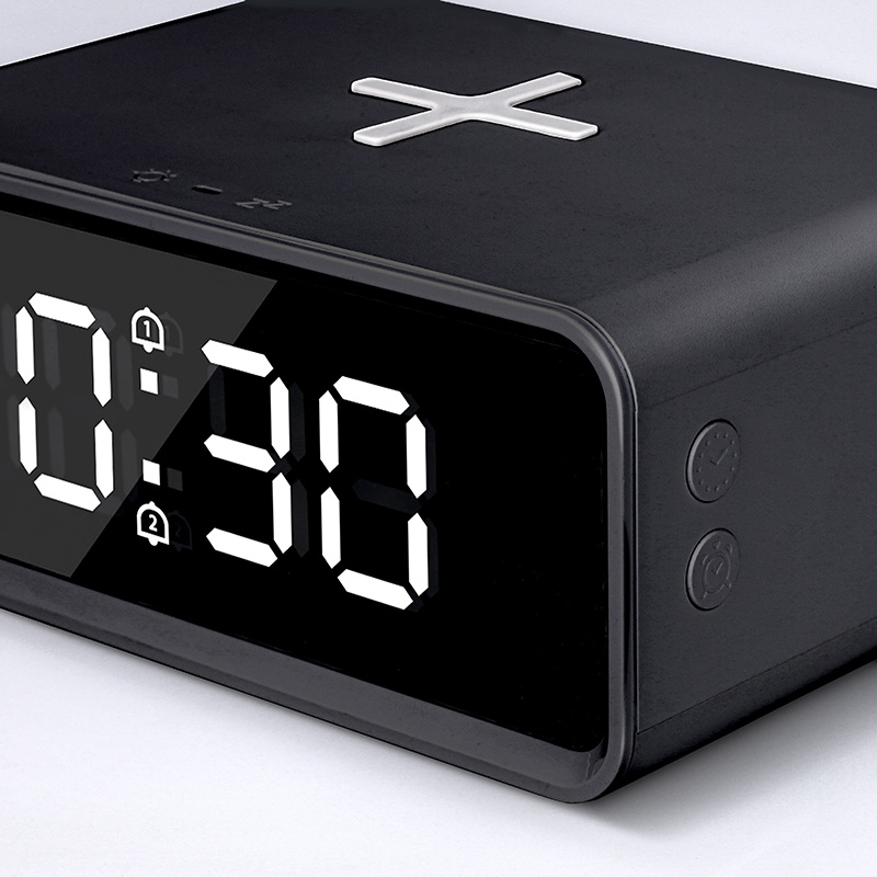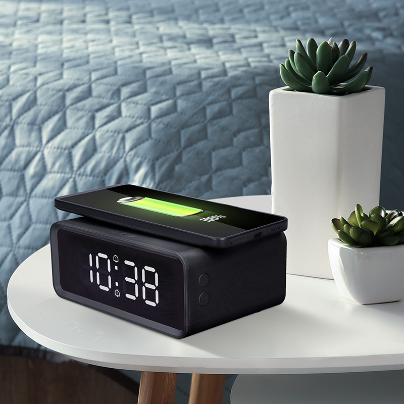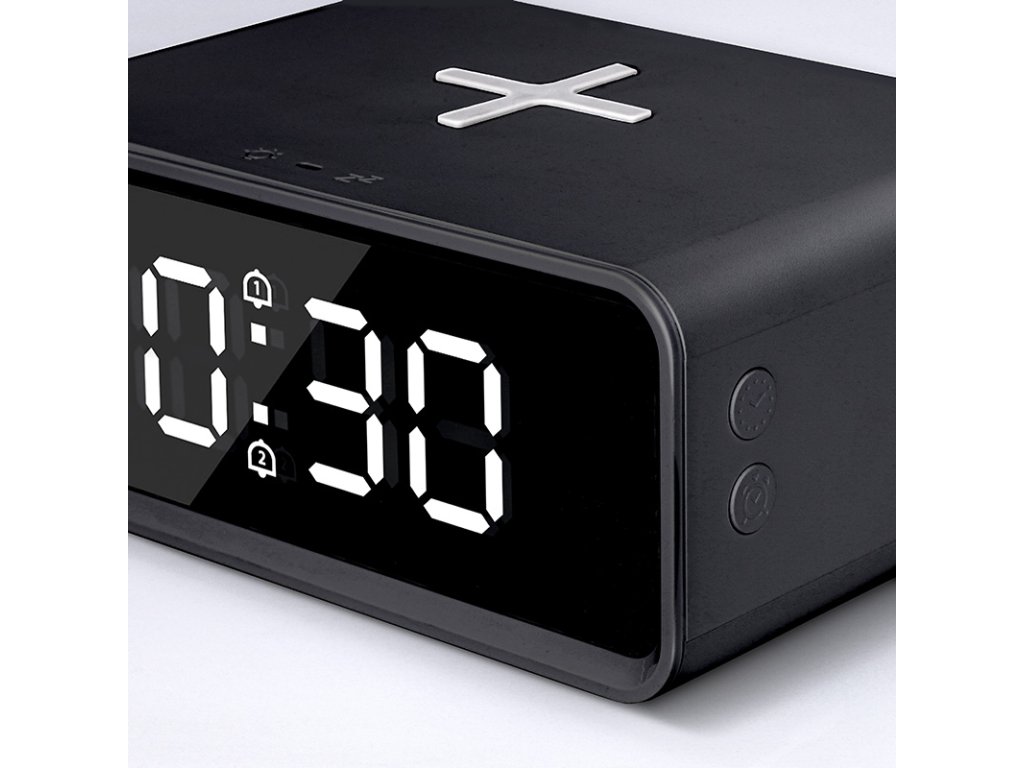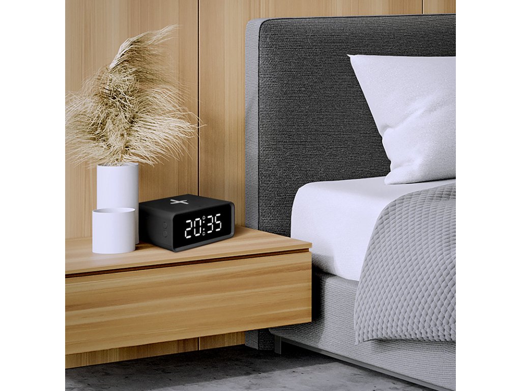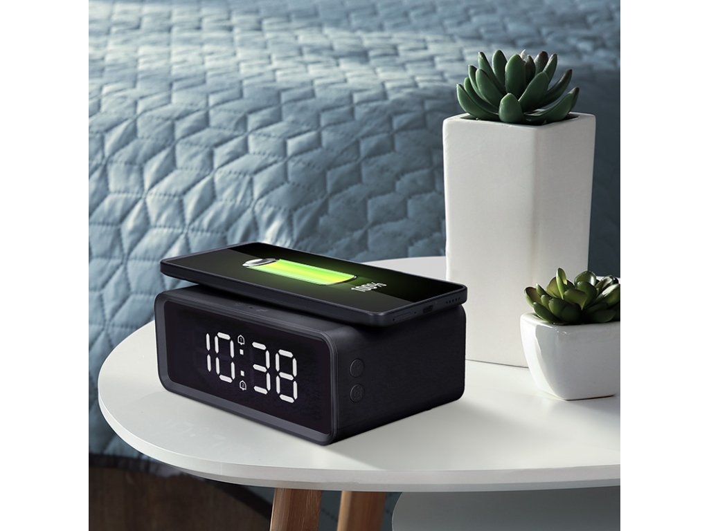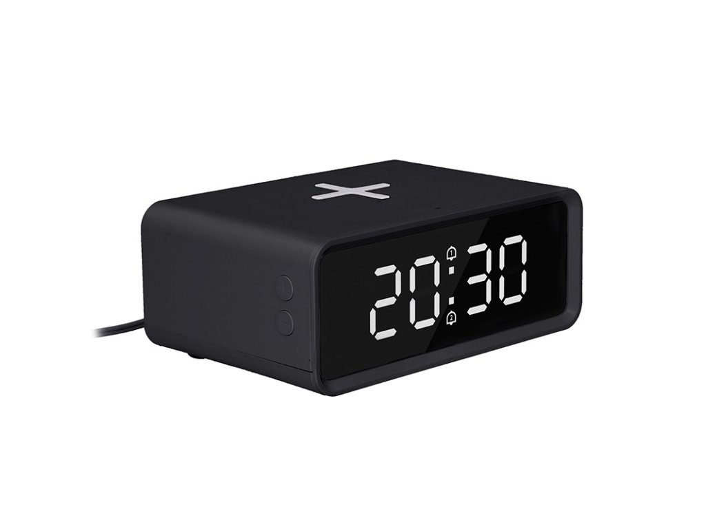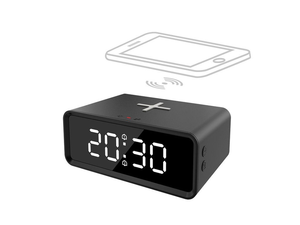 Digitálne hodiny s bezdrôtovou nabíjačkou Qi