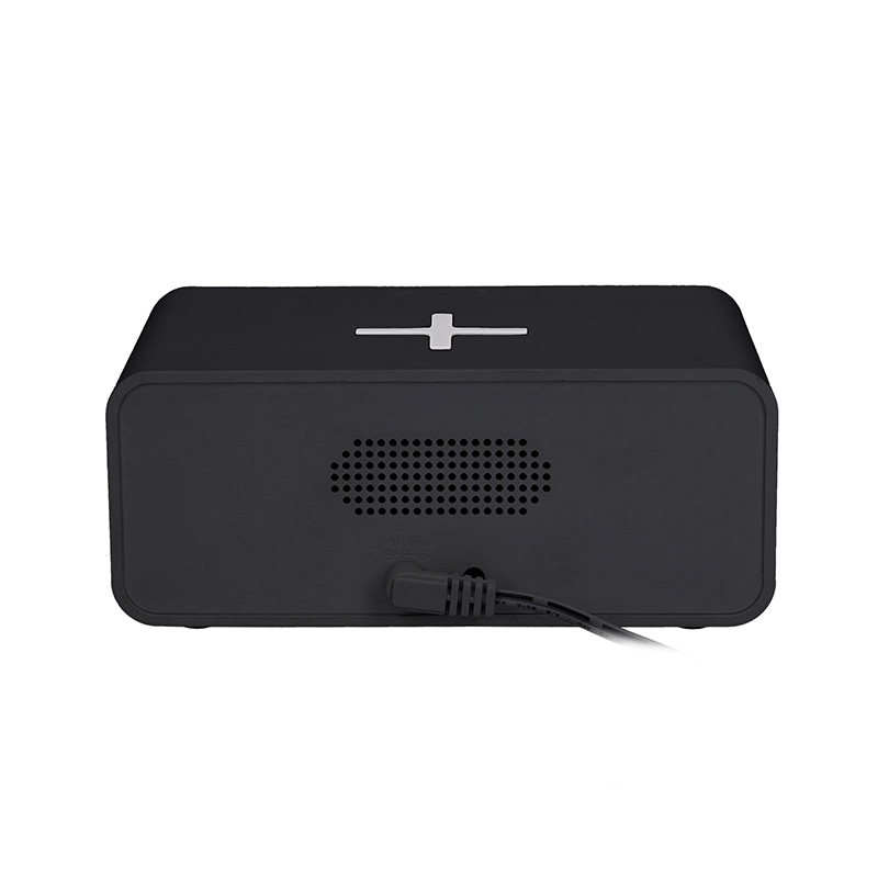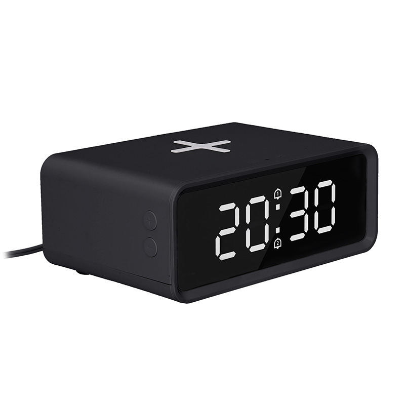 Tyto moderné hodiny v sebe spájajú bezdrôtovú nabíjačku (Qi, max. 15 W), hodiny, teplomer a duálny budík s funkciou opakovaného budenia. Veľký LED displej s vysokým rozlíšením umožňuje vybrať si medzi zobrazovaním iba času alebo striedaním času a teploty. Nastaviteľný jas displeja (3 úrovne + vypnutie) zabezpečuje pohodlné používanie aj v noci. Protišmyková podložka udrží telefón počas nabíjania bezpečne na mieste. Napájanie cez DC5V-9V/2-3A, záložná batéria CR2032 zachová nastavenia pri výpadku prúdu.