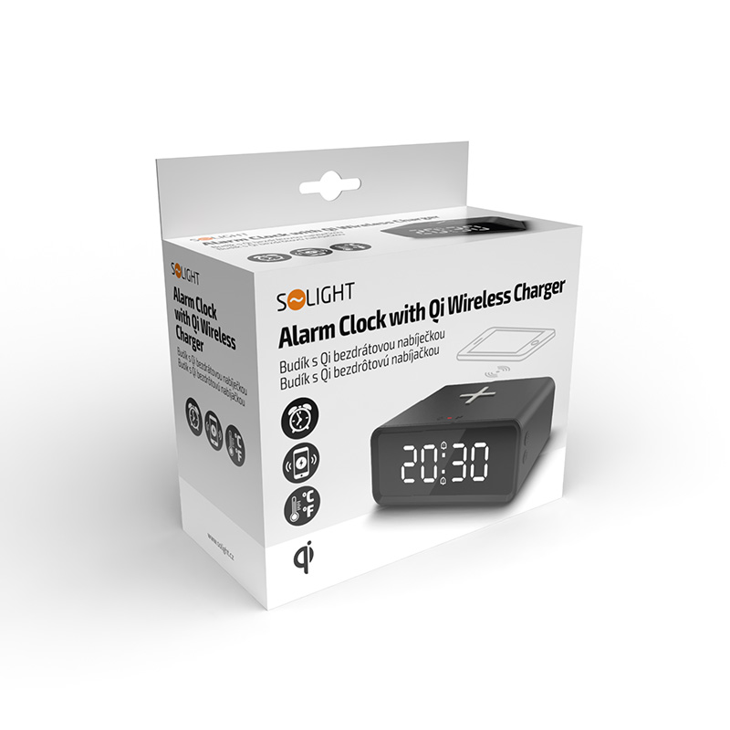 Solight digitálne hodiny s Qi bezdrôtovú nabíjačkou