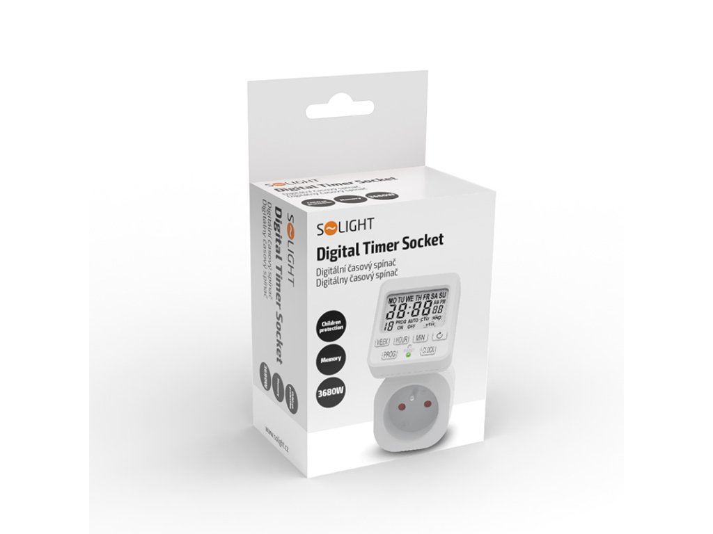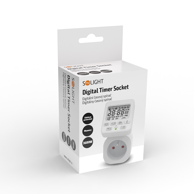 Tento časovač je vybavený prehľadným displejom LCD, ktorý sa dá otáčať pre lepšiu čitateľnosť. Ponúka 18 denných spínacích cyklov a 15 skupín na nastavenie rôznych dní. Má časovač odpočítavania, detskú poistku a pamäť na ukladanie nastavených hodnôt. Presnosť nastavenia je 1 minúta, prevádzková teplota sa pohybuje od -10 °C do +40 °C. Napájanie 230 V/16 A (3680 W).