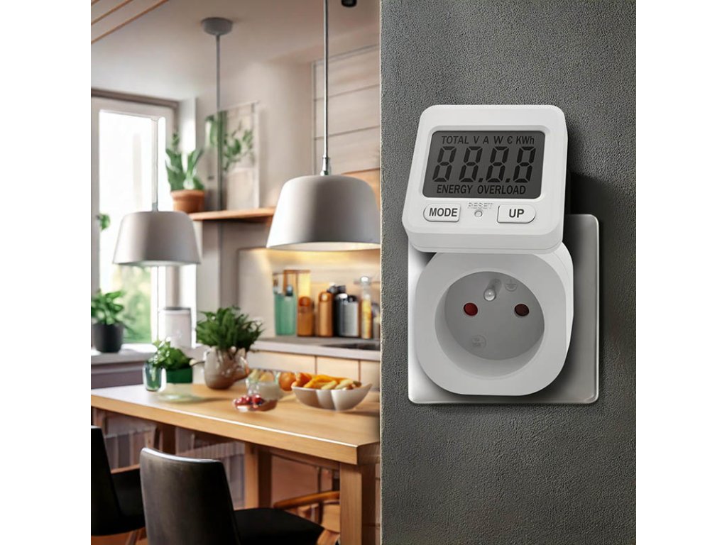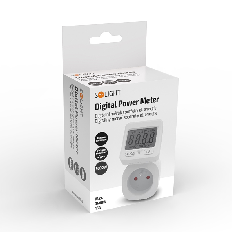 Elektromer s prehľadným 4,7 cm LCD displejom, ktorý možno pre lepšiu čitateľnosť otáčať. Ovládanie je jednoduché pomocou dvoch tlačidiel. Meria až do 9999 kWh a zaznamenáva spotrebu energie od 2 W do 3680 W. Vnútorná pamäť uchováva nastavené hodnoty vrátane ceny za kWh na presný výpočet celkových nákladov. Meria elektrické veličiny, ako je prúd, napätie, okamžitý a celkový výkon. Má detskú poistku, indikáciu prekročenia maximálneho príkonu a meria s presnosťou ±2 %. Prevádzková teplota je 0 až +50 °C. Napájanie: AC 230 V, 50 Hz.