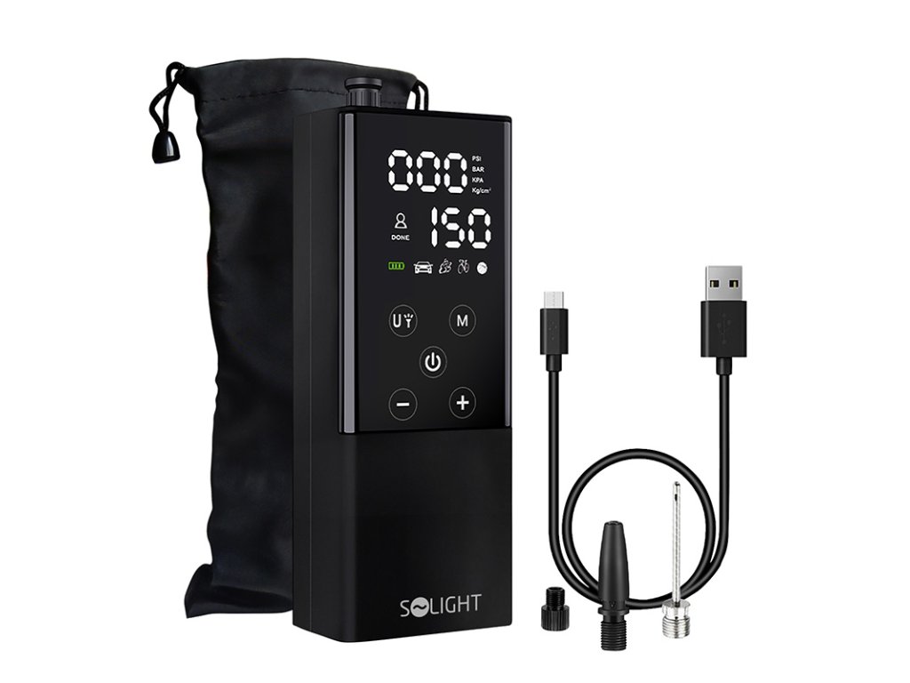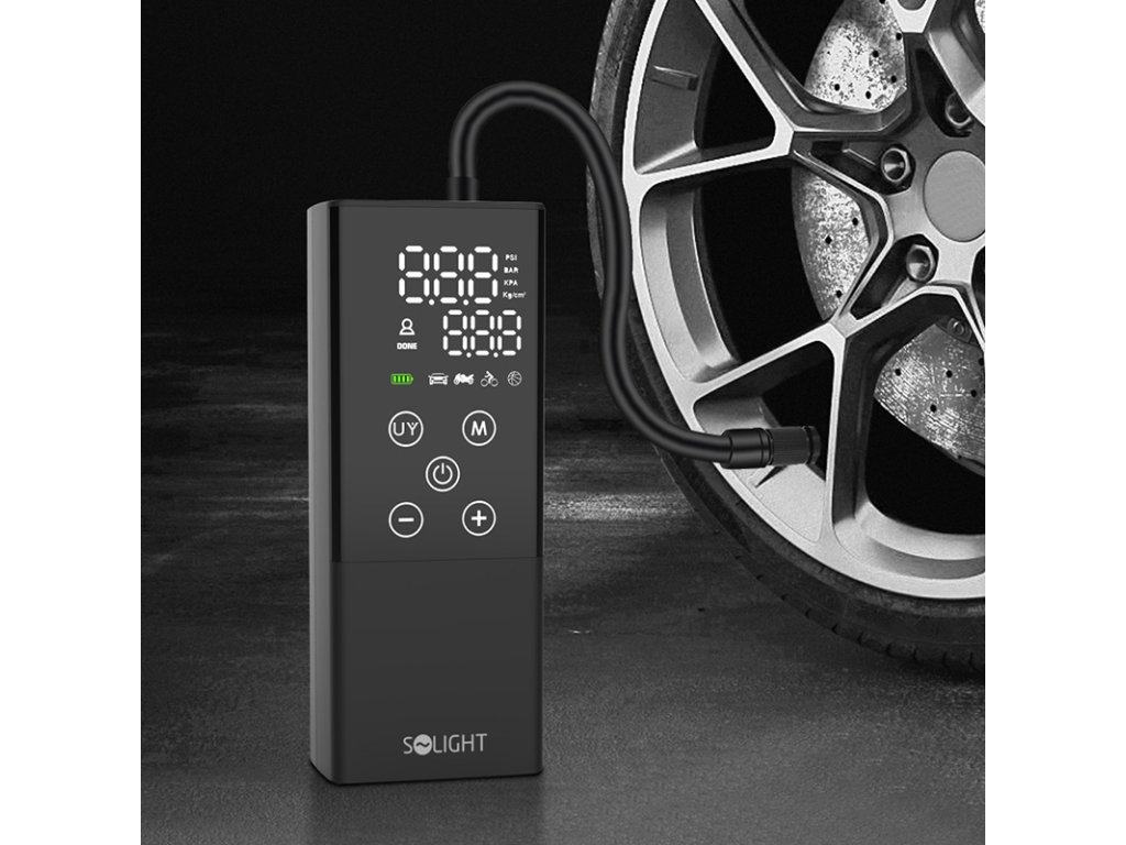 Digitálny kompresor Solight vám umožní ľahko a bez námahy nafúknuť pneumatiky auta, motorky, bicykla, kolobežky alebo nafúknuť loptu či iné nafukovacie výrobky.