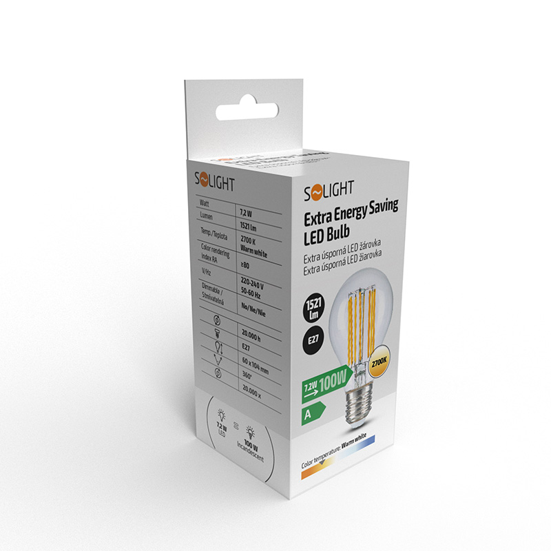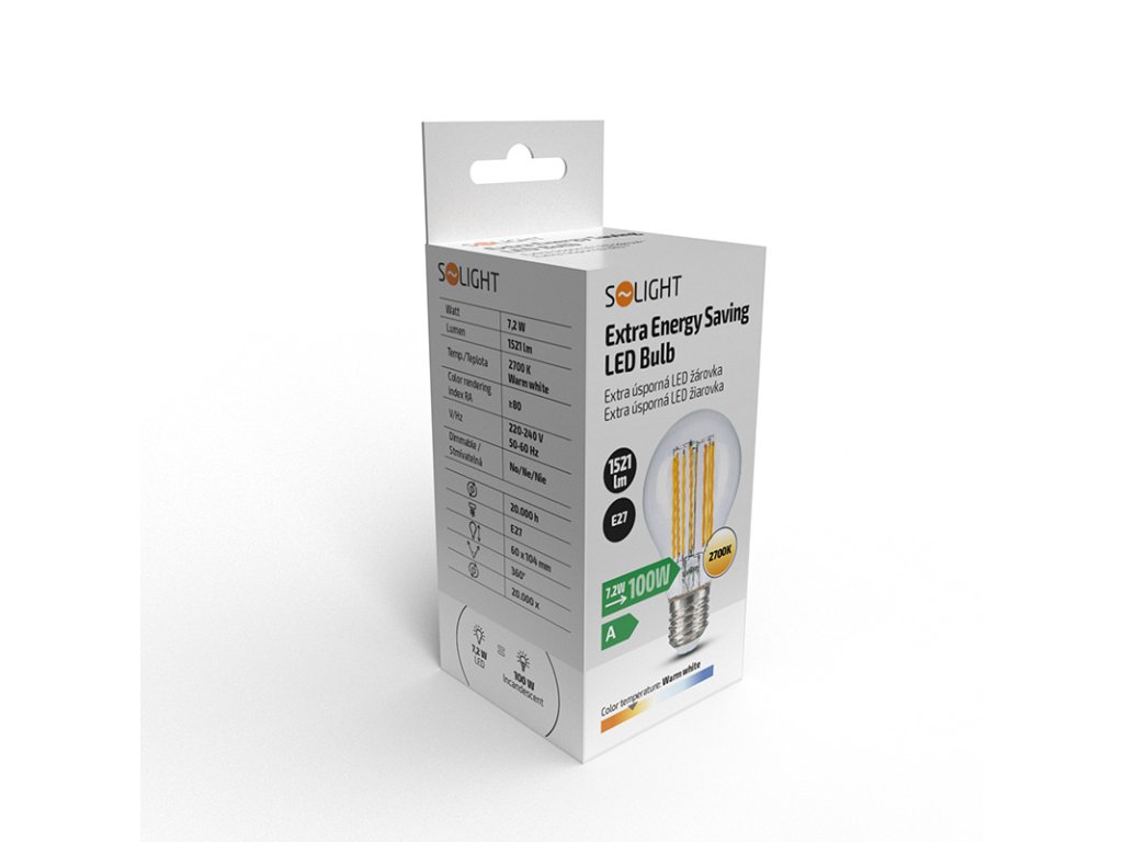 Solight extra úsporná LED žiarovka 7,2 W, 1521lm, 2700K, ekv. 100W