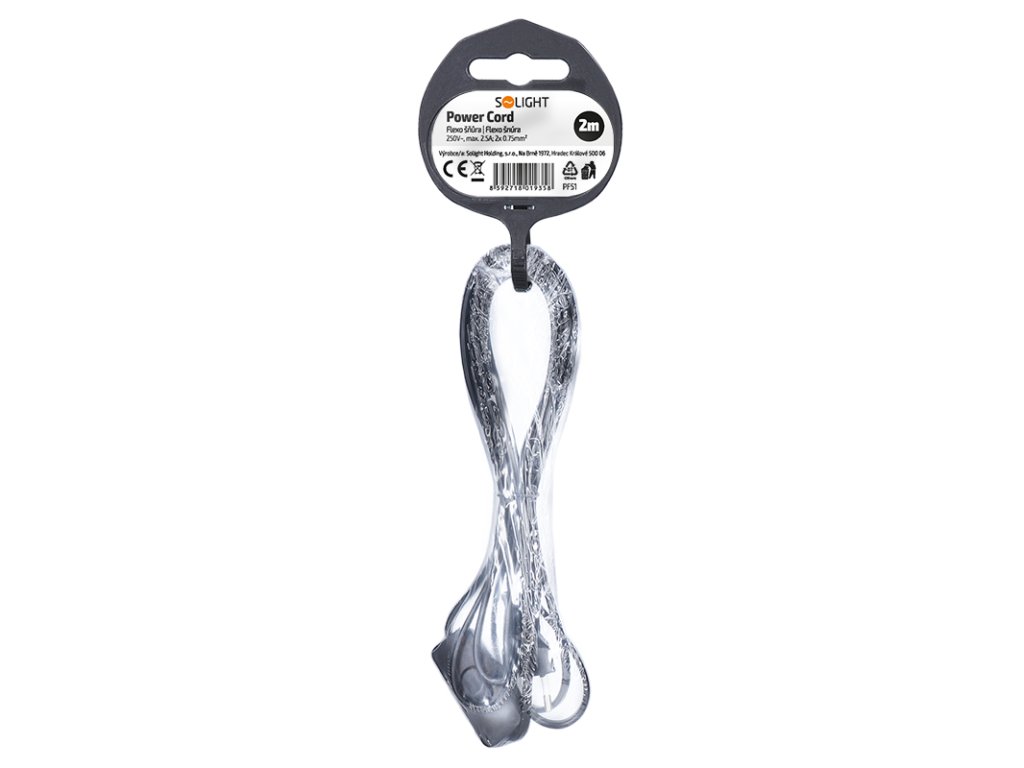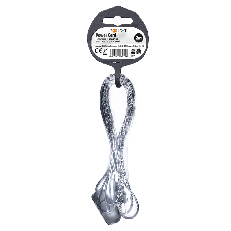 Solight flexo šnúra, 2m, 2 x 0,75mm2, čierna, plochá, vypínač