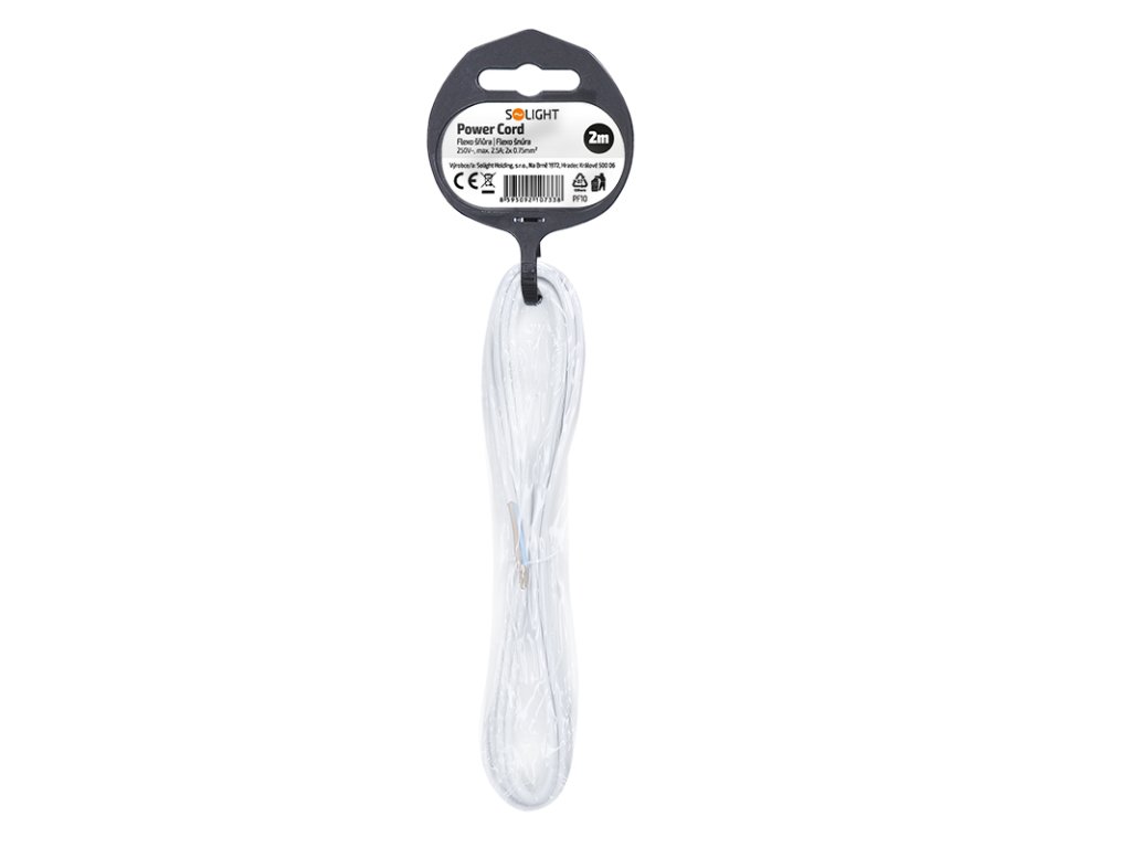 Solight flexo šnúra, 2x 0,75mm2, biela, plochá, 2m