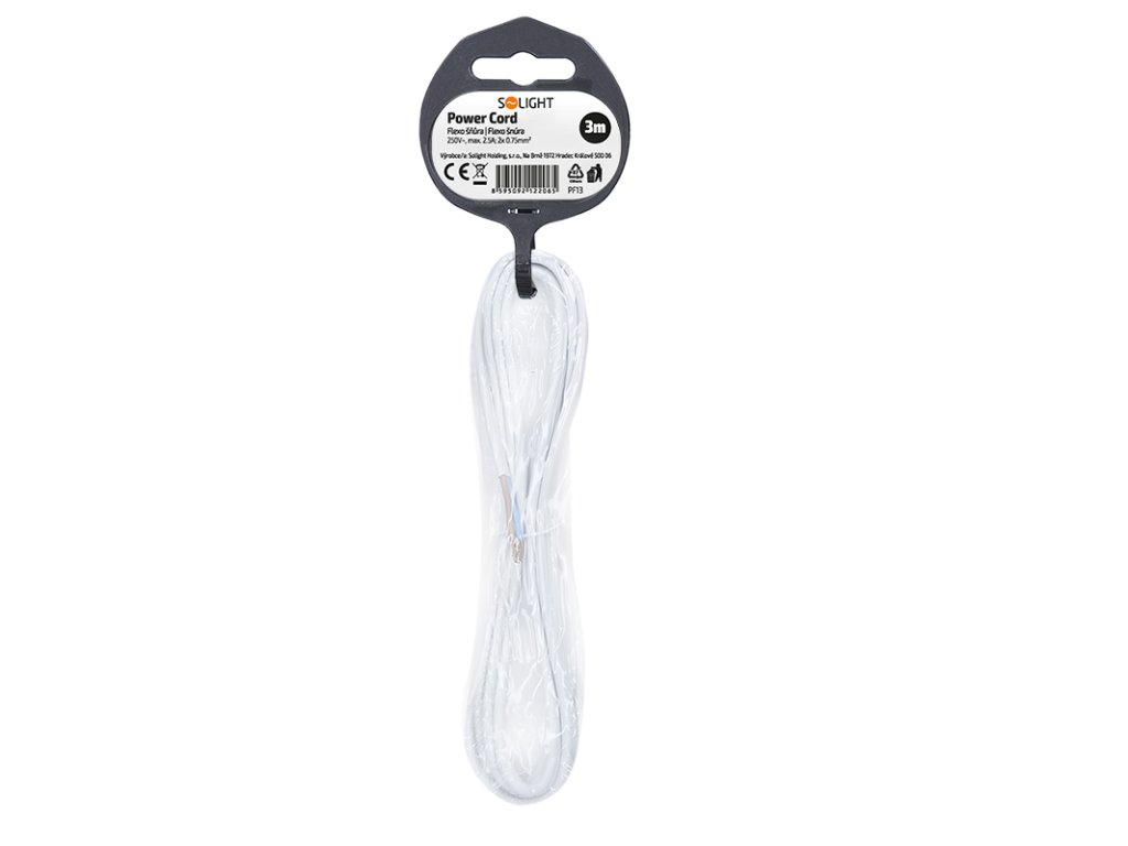 Prívodný PVC kábel s voľnými vodičmi umožňuje pripojenie priamo do spotrebiča alebo k pohyblivej zásuvke. Vodiče sú zo splietaných medených drôtikov s medenými krimpovanými koncovkami, uľahčujúce montáž do svorkovnice. Určené pre vnútorné použitie, stupeň krytia IP20.