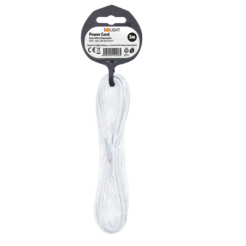 Solight flexo šnúra, 2x 0,75mm2, biela, plochá, vypínač, 3m