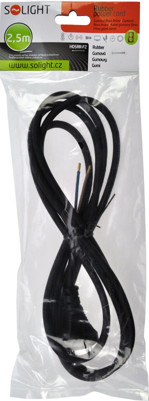 Solight flexo šnúra, 2x 1mm2, gumová, čierna, 2,5m