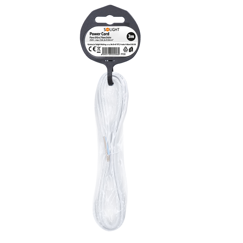 Prívodný PVC kábel s voľnými vodičmi umožňuje pripojenie priamo do spotrebiča alebo k pohyblivej zásuvke. Vodiče sú zo splietaných medených drôtikov s medenými krimpovanými koncovkami, uľahčujúce montáž do svorkovnice. Určené pre vnútorné použitie, stupeň krytia IP20.