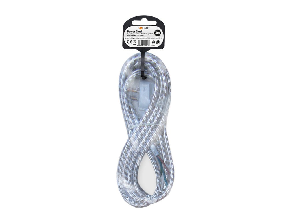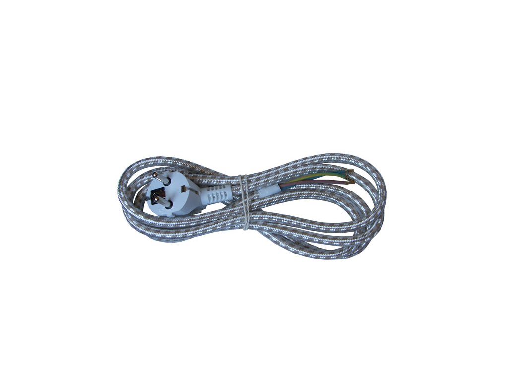 Prívodný opletený kábel s voľnými vodičmi umožňuje pripojenie priamo do spotřebičov. Používam najmä k žehličkám. Možno pripojiť i k pohyblivé zásuvce. Vodiče sú zo splietaných medených drôtikov s medenými krimpovanými koncovkami, uľahčujúce montáž do svorkovnice. Určené pre vnútorné použitie, stupeň krytia IP20.