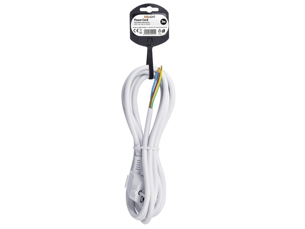 Prívodný PVC kábel s voľnými vodičmi umožňuje pripojenie priamo do spotrebiča alebo k pohyblivej zásuvke. Vodiče sú zo splietaných medených drôtikov s medenými krimpovanými koncovkami, uľahčujúce montáž do svorkovnice. Určené pre vnútorné použitie, stupeň krytia IP20.