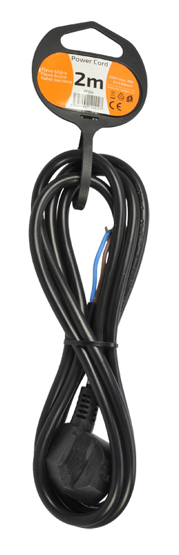 Prívodný PVC kábel s voľnými vodičmi umožňuje pripojenie priamo do spotrebiča alebo k pohyblivej zásuvke. Vodiče sú zo splietaných medených drôtikov s medenými krimpovanými koncovkami, uľahčujúce montáž do svorkovnice. Určené pre vnútorné použitie, stupeň krytia IP20.