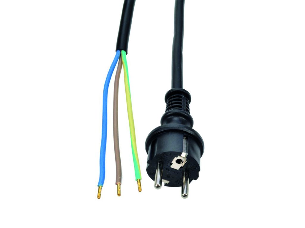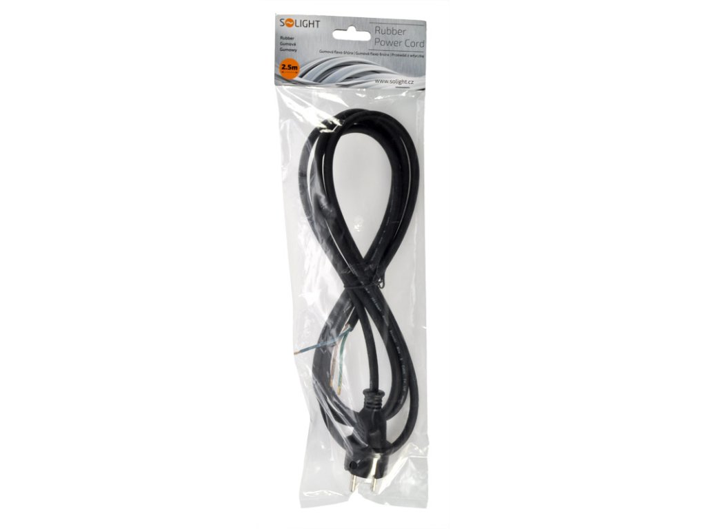 Prívodný gumový kábel s voľnými vodičmi umožňuje pripojenie priamo do spotrebiča alebo k pohyblivej zásuvke. Vodiče sú zo splietaných medených drôtikov s medenými krimpovanými koncovkami, uľahčujúce montáž do svorkovnice. Určené pre vonkajšie aj vnútorné použitie, stupeň krytia IP44.