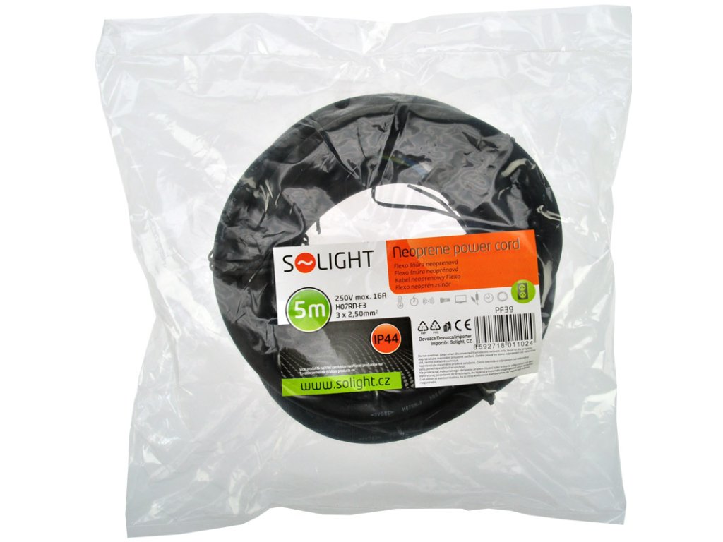 Solight flexo šnúra, 5m, 3 x 2.5mm2, gumová H07RN-F3, čierna