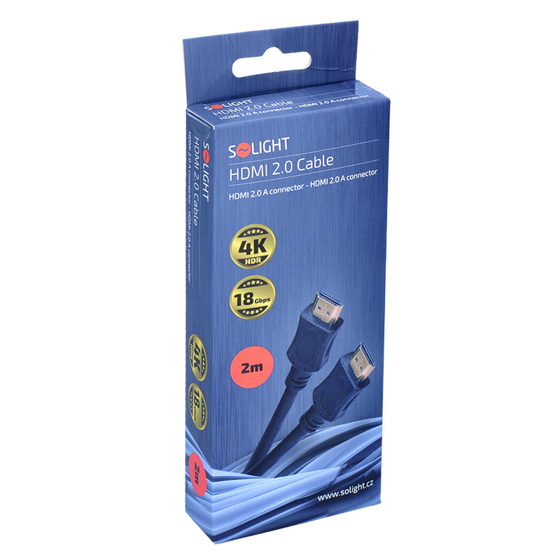 Solight HDMI kábel s Ethernetom, HDMI 2.0 A konektor - HDMI 2.0 A konektor, blister, 2m