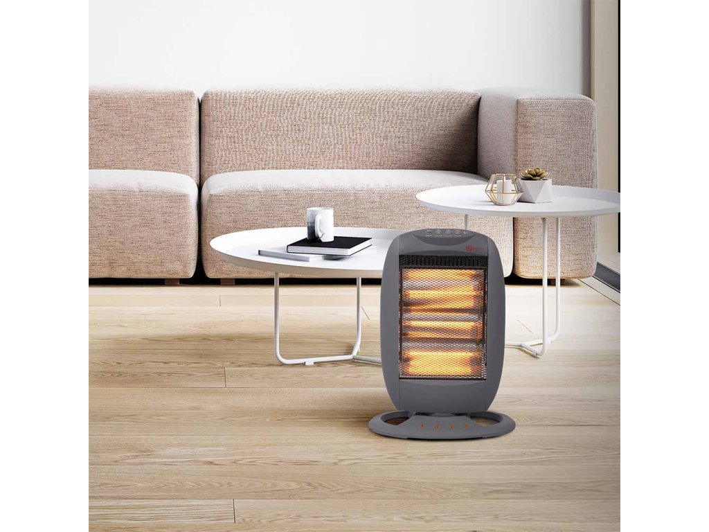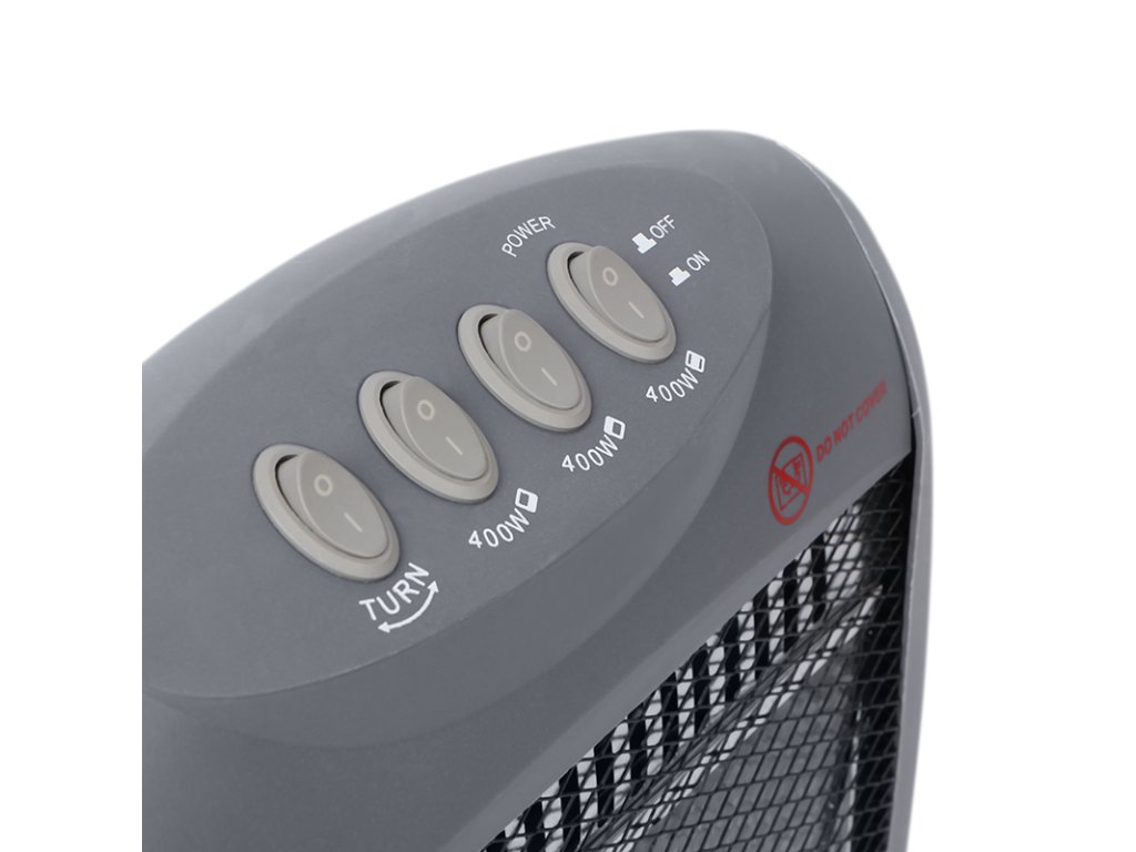 1200 W s tromi úrovňami výkonu (400 W / 800 W / 1200 W) a halogénovými trubicami pre účinný ohrev. Otáčanie o 90° zabezpečuje rovnomerné rozloženie tepla. Ochrana proti prehriatiu a prevrhnutiu zaisťuje bezpečnú prevádzku. Rukoväť na jednoduchú manipuláciu, dĺžka kábla 1,5 m. Vhodné pre miestnosti s objemom do 50 m3. Napájanie 230 V/50 Hz, krytie IP20.