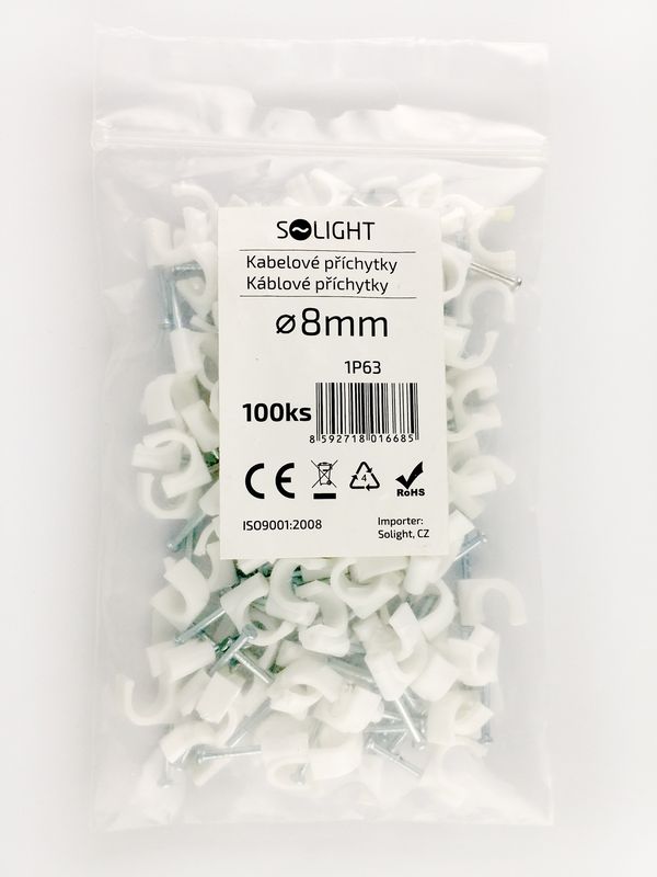 Solight káblové príchytky, priemer 8mm, biele, 100ks