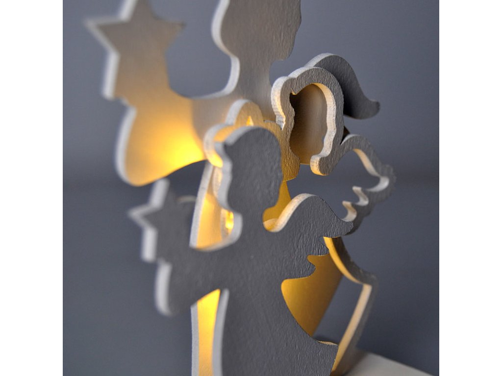 Elegantná dekorácia na stôl v tvare vianočného stromčeka zaujme čistými líniami a jemným teplým bielym osvetlením. Tri integrované LED diódy vytvárajú jemnú žiaru, ktorá dopĺňa prirodzený biely povrch dekorácie. Vďaka rozmerom 15 × 10,5 × 4,9 cm je ideálnou dekoráciou na nočný stolík, komodu alebo do detskej izby.