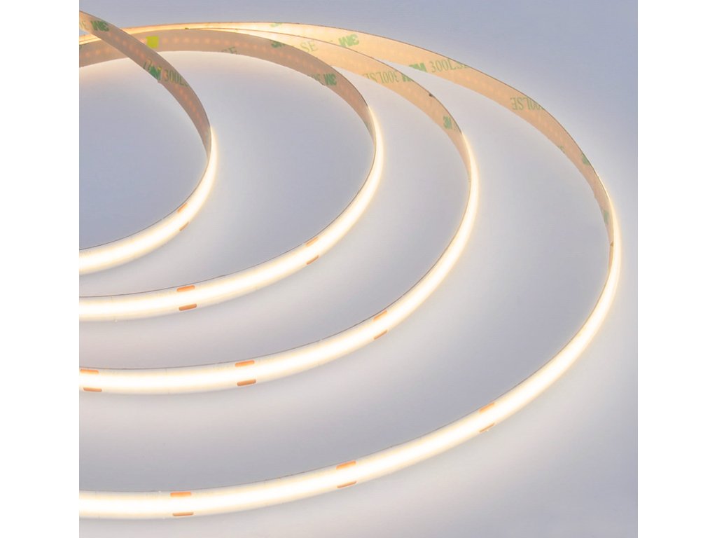 Vytvorte útulnú atmosféru pomocou pásu LED COB s teplým bielym svetlom (3000 K) a rovnomerným osvetlením bez tieňov. Vďaka vysokému svetelnému toku 800 lm/m a príkonu 8 W/m je vhodný na dekoratívne a praktické osvetlenie obývacích izieb, spální alebo reštaurácií.