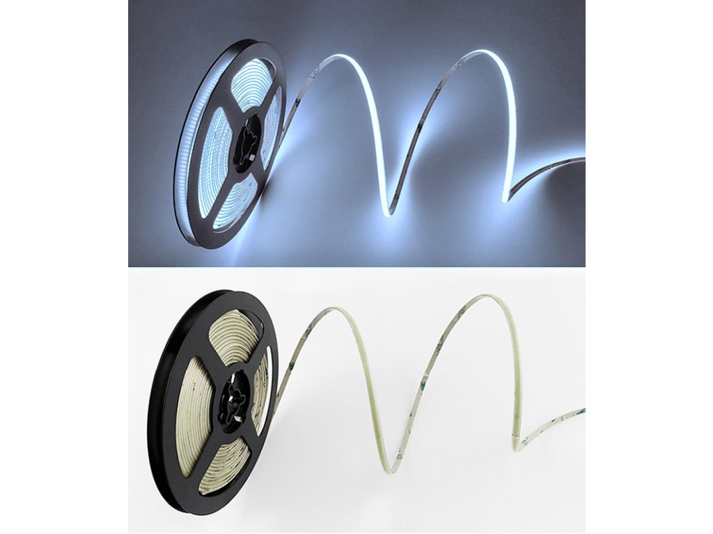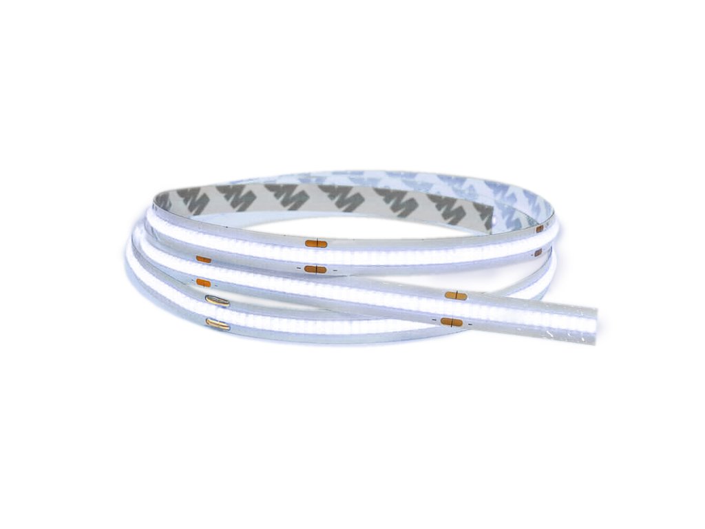 Moderný LED pásik s technológiou COB vyniká kompaktným svetelným výkonom bez viditeľných bodov a studenou bielou farbou (6000 K), ideálnou na osvetlenie pracovných plôch, vitrín alebo zrkadiel. S príkonom 10 W/m a svetelným tokom 1000 lm/m získate jasné a úsporné osvetlenie.