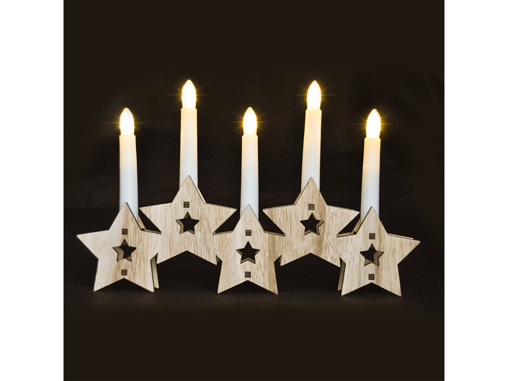 - LED drevený svietnik s dekorom hviezd