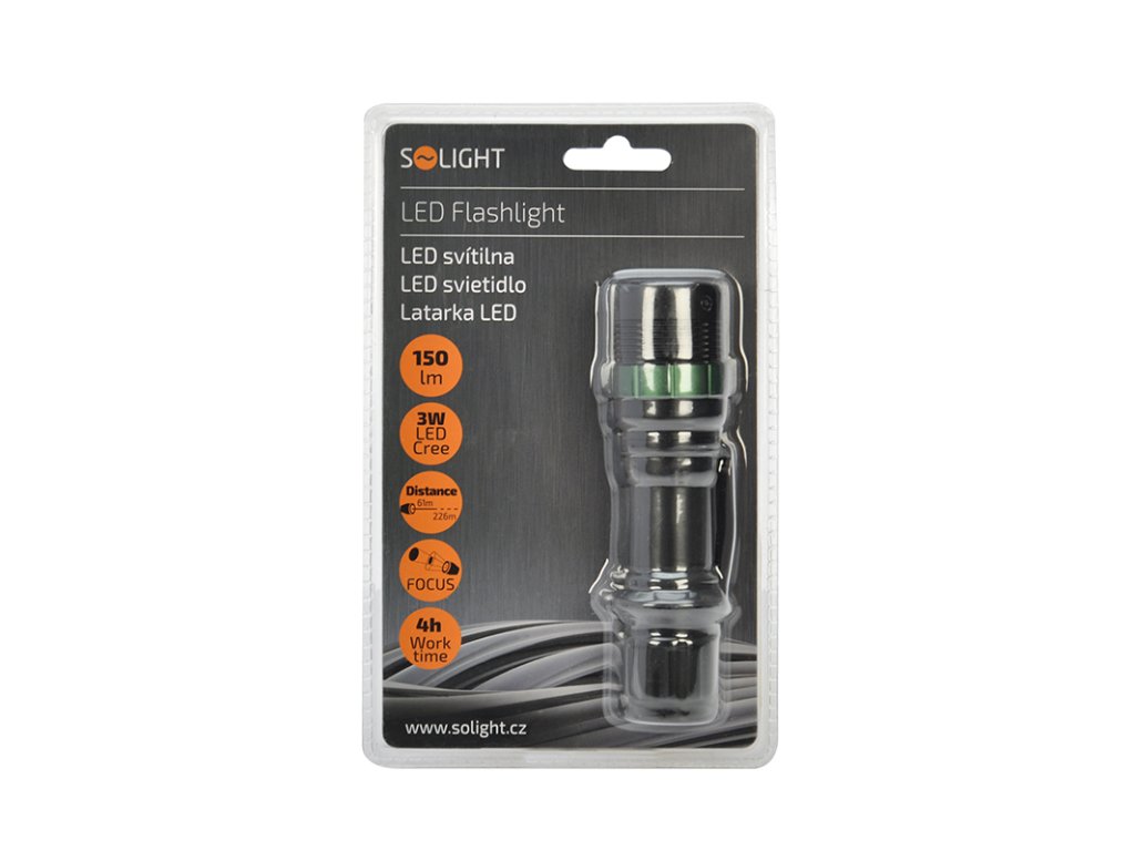 Kvalitná ručná LED baterka s LED CREE XPE ponúka svetelný výkon 150 lm a nastavenie kužeľa (zoom). Dosvit až 226 m umožňuje použitie na turistiku, nočné aktivity alebo profesionálne použitie. Ponúka tri režimy: plný výkon, polovičný výkon a blikanie.