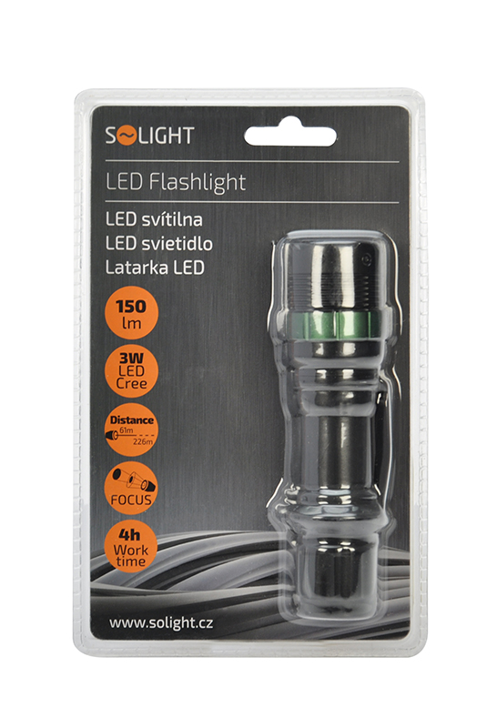 Solight LED kovové svietidlo, 150lm, 3W CREE LED, čierna, fokus, 3 x AAA