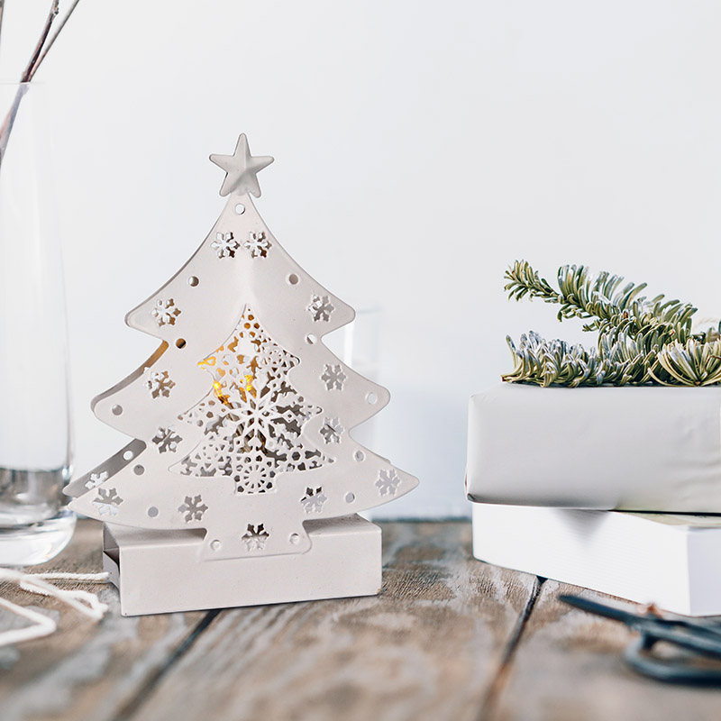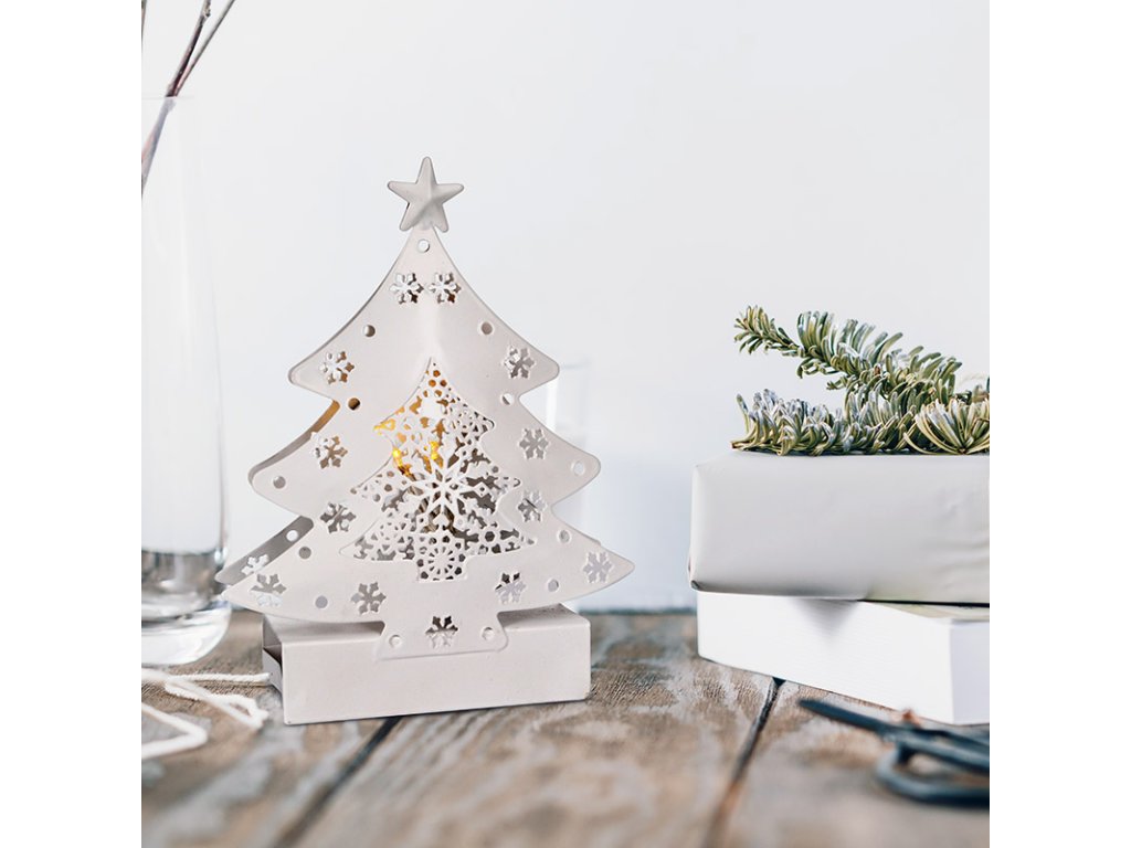 Malý LED vianočný stromček s rozmermi 15 × 11,5 × 3,5 cm je ideálnym doplnkom na parapet, poličku alebo vianočný stôl. Vďaka svojim kompaktným rozmerom nezaberie veľa miesta, ale napriek tomu vyčarí útulnú atmosféru vďaka trom LED diódam vyžarujúcim teplé biele svetlo. Biely dizajn pôsobí čisto a moderne, takže ľahko zapadne do každého interiéru.