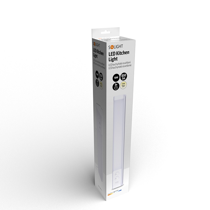 Solight LED kuchynské svietidlo, 2x zásuvka, vypínač, 10W, 4100K, 51cm