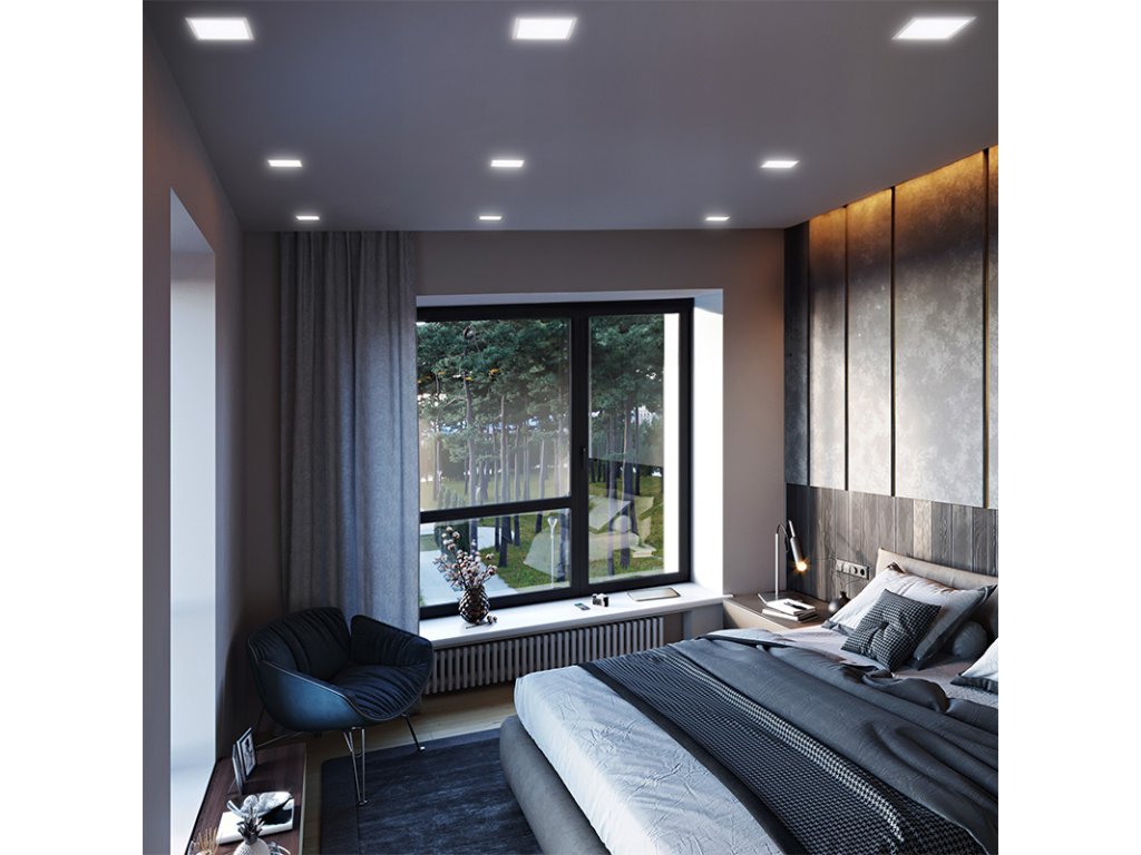Navrhnutý štvorcový stropný panel LED s výkonom 12 W a svetelným tokom 900 lm je ideálny na zapustenú inštaláciu do stropov. Praktický prepínač umožňuje zvoliť teplotu svetla podľa aktuálnych potrieb - od teplej bielej 3000K cez neutrálnu 4000K až po studenú bielu 6000K. Panel má vynikajúce svetelné pokrytie vďaka 160° uhlu svietenia a okamžitému štartu bez oneskorenia.