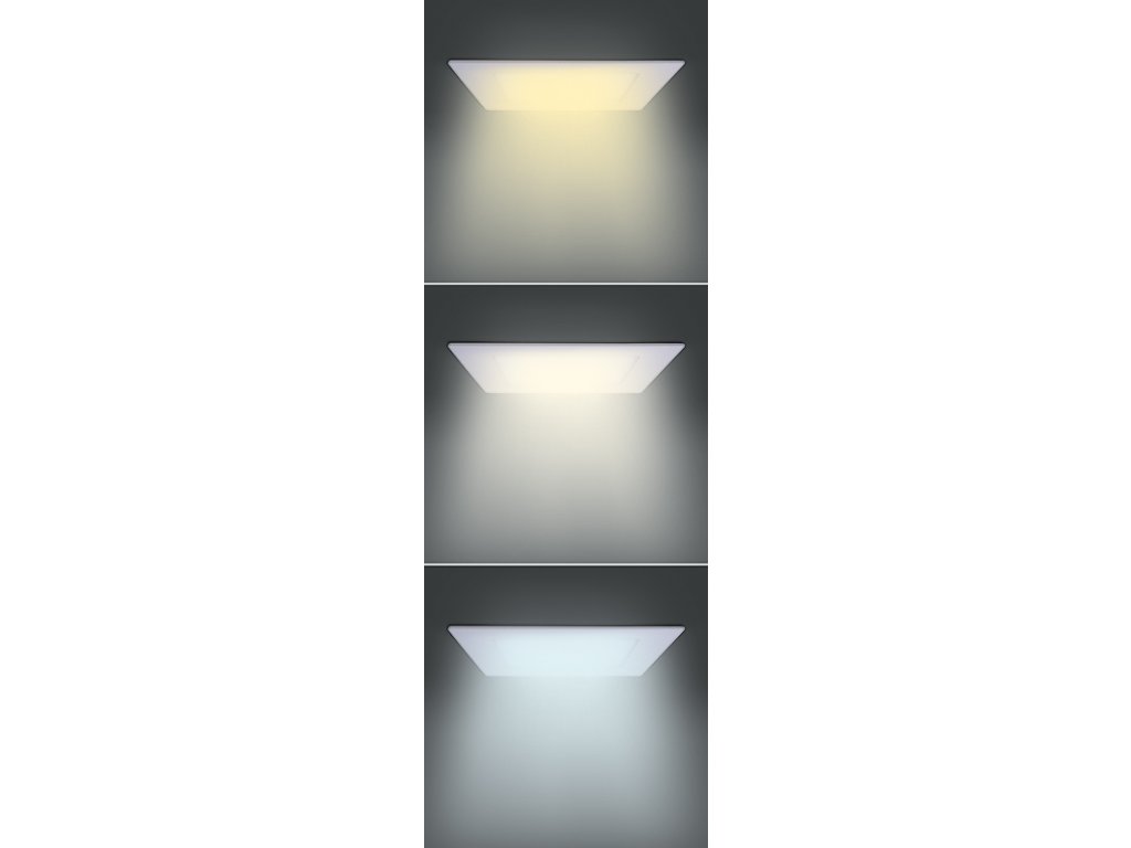 - panel disponuje špeciálnym LED zdrojom s prepínačom, ktorý umožňuje nastavenie teploty svetla (chromatickosti) 3000K, 4000K alebo 6000K