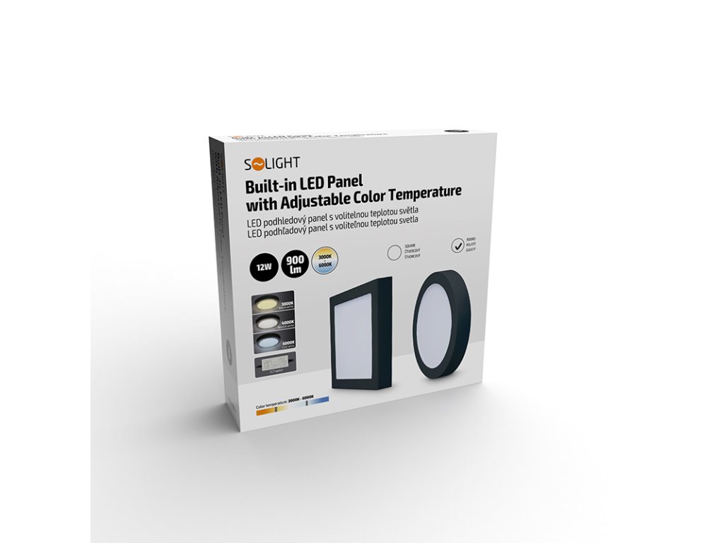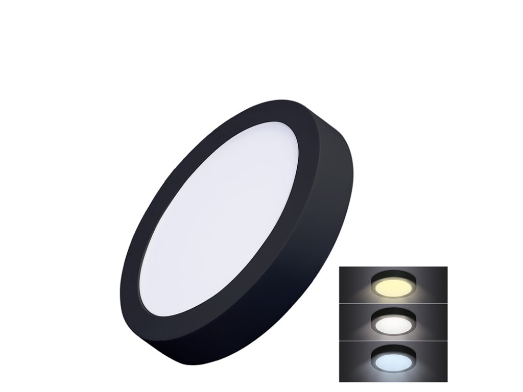 Solight LED mini panel CCT, prisazený, 12W, 900lm, 3000K, 4000K, 6000K, okrúhly, čierna farba