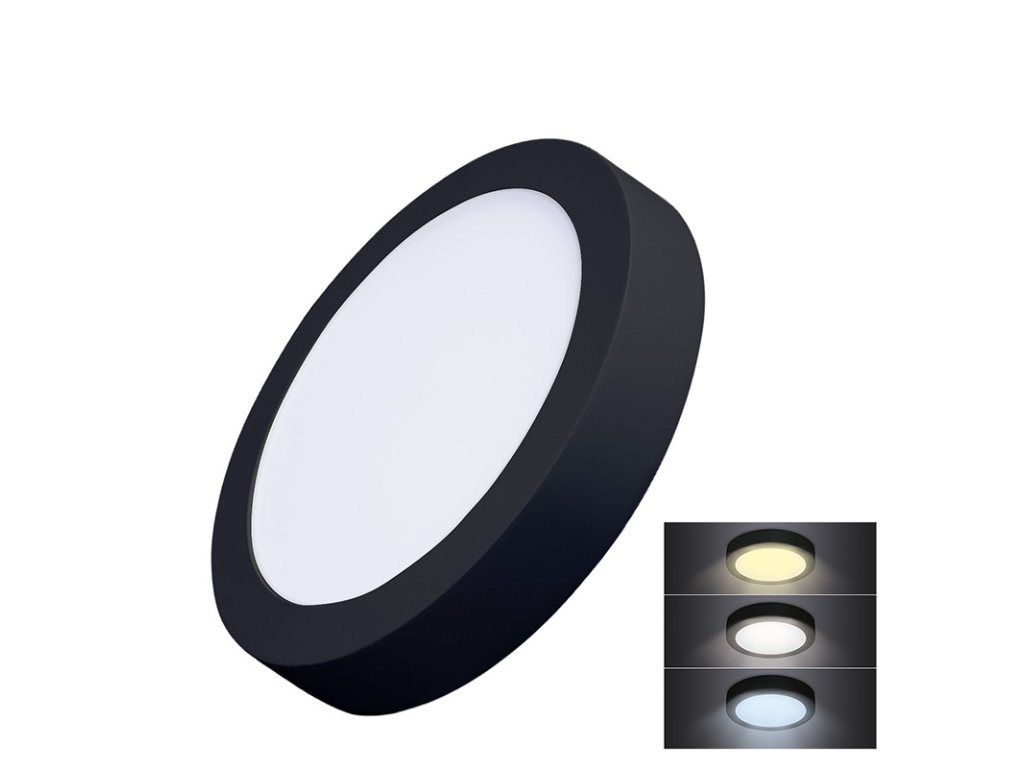 Solight LED mini panel CCT, prisazený, 18W, 1530lm, 3000K, 4000K, 6000K, okrúhly, čierna farba