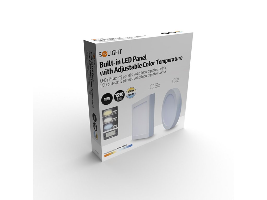Solight LED mini panel CCT, prisazený, 18W, 1530lm, 3000K, 4000K, 6000K, štvorcový