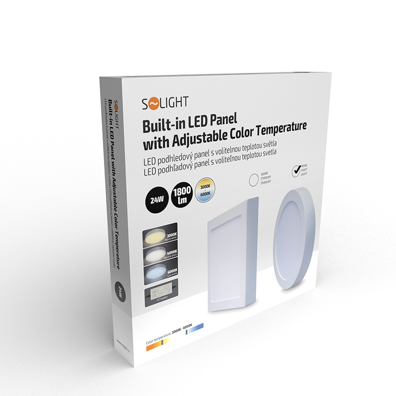 Solight LED mini panel CCT, prisazený, 24W, 1800lm, 3000K, 4000K, 6000K, okrúhly