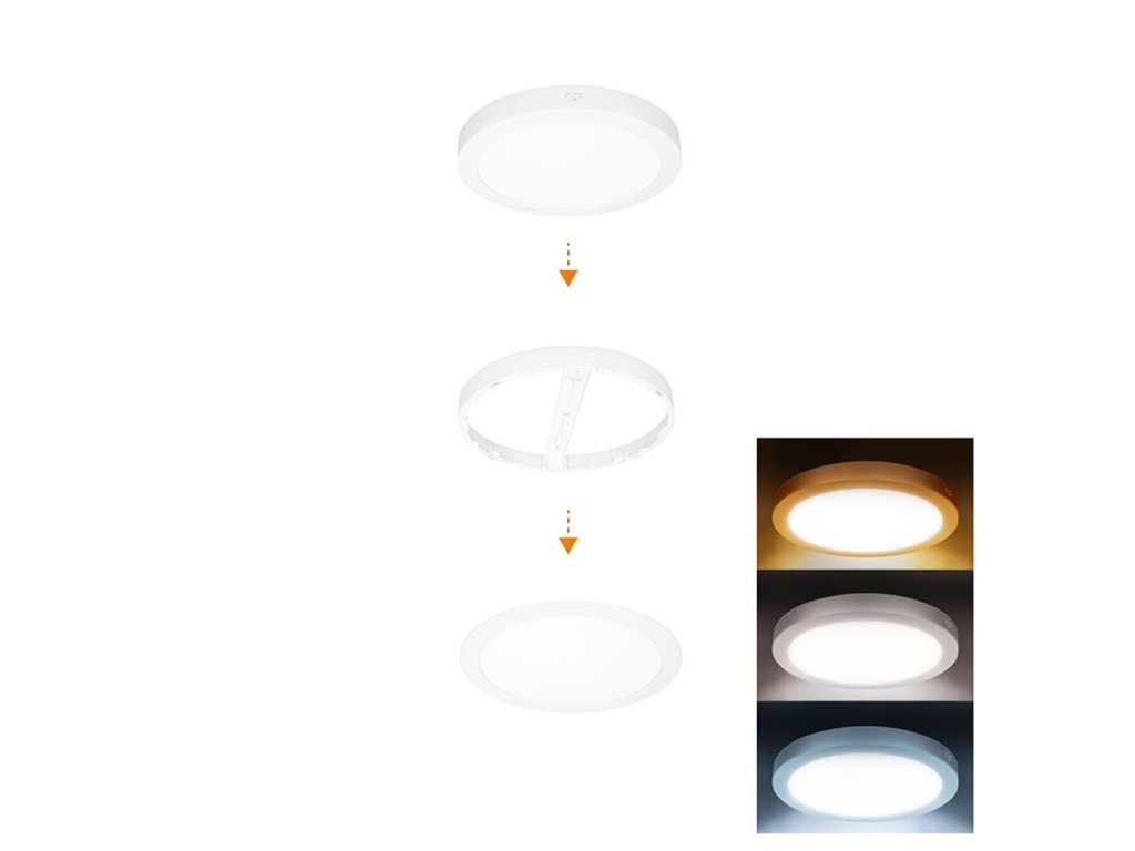Tento LED mini panel je ideálnym riešením pre stropné osvetlenie v kúpeľniach, chodbách, spálňach, obývacích i detských izbách. Vďaka svojej univerzálnej konštrukcii ho možno inštalovať prisadene na strop alebo do podhľadu. Panel je vybavený prepínačom, ktorý umožňuje nastavenie teploty svetla (3000K, 4000K, 6000K), a tým prispôsobiť atmosféru miestnosti podľa vašich potrieb – od teplej cez neutrálnu až po studenú bielu.