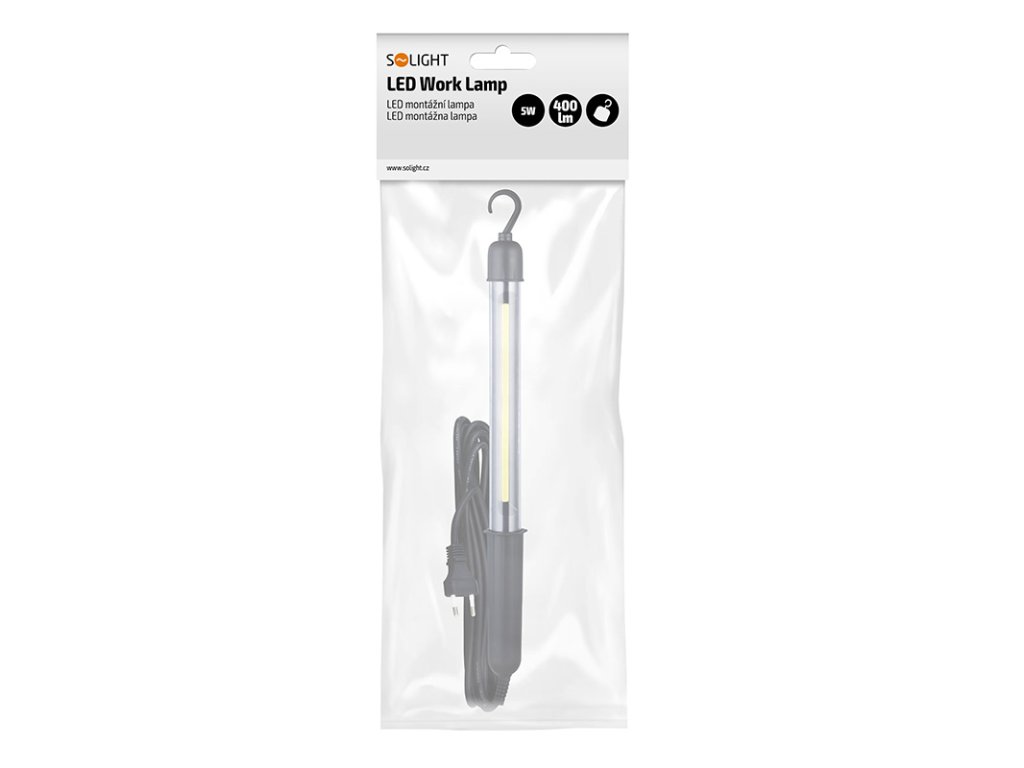 Výkonná pracovná lampa s 5W zdrojom COB LED poskytuje výkonný svetelný tok 400 lm. Je ideálna na osvetlenie pracovných plôch v garáži, dielni alebo na stavbe. Má otočný hák na zavesenie a 5 m napájací kábel.