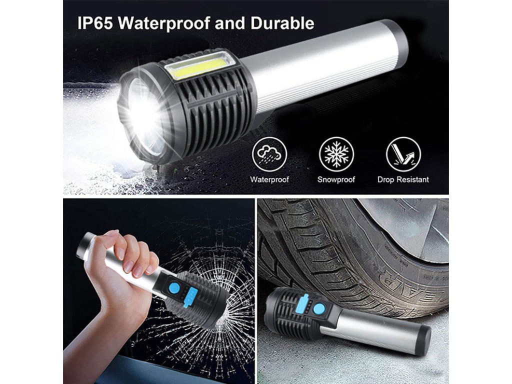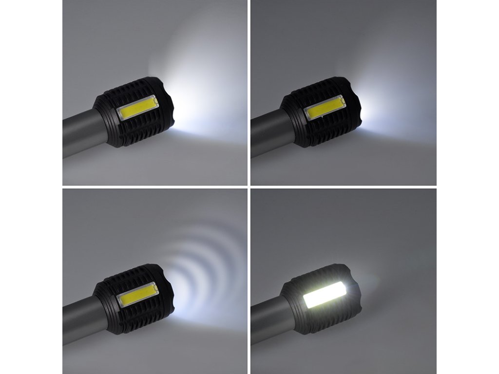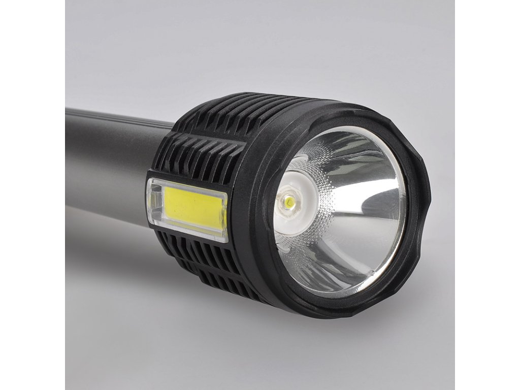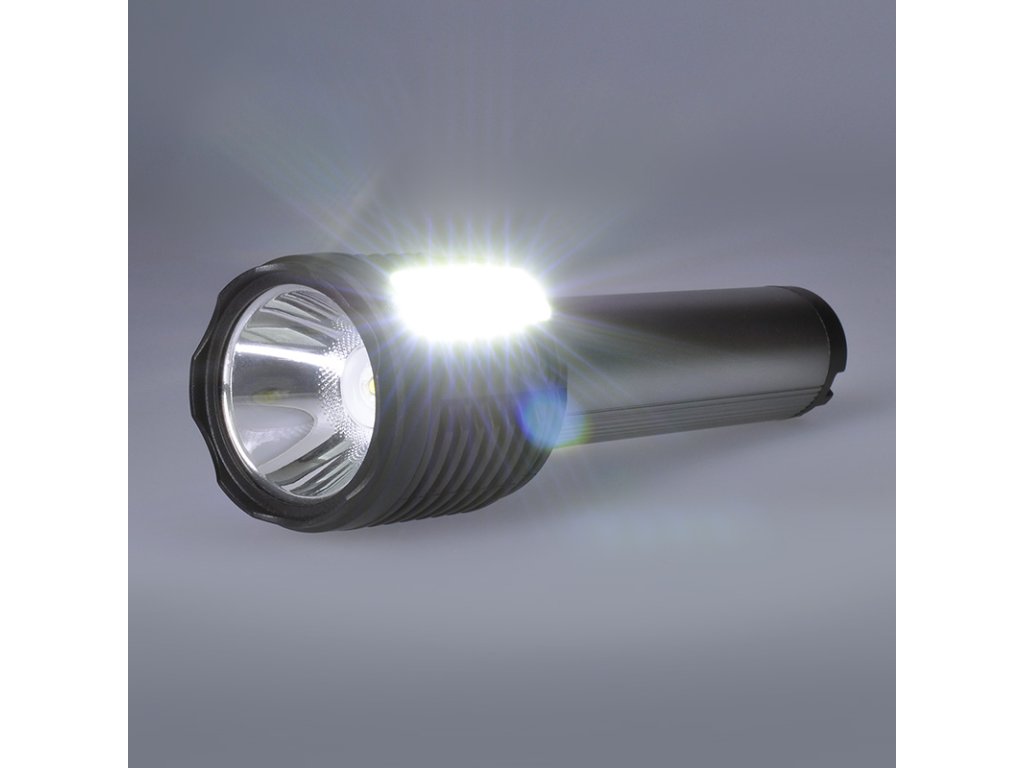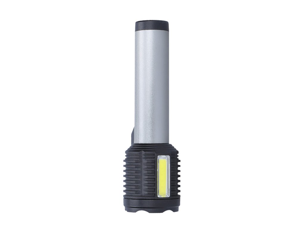 Ručná LED baterka s kombináciou prednej 3W LED a bočného 3W COB svetla poskytuje 150 + 150 lm lúmenov a ponúka štyri režimy svietenia. Batéria s kapacitou 1200 mAh poskytuje 3-6 hodín prevádzky, nabíjanie trvá približne 4 hodiny prostredníctvom micro USB (kábel je súčasťou balenia). Je odolná voči striekajúcej vode (IP44), má rozmery 150 x 45 mm a kombináciu hliníka a plastu, takže je ideálna na každodenné používanie. Dvojfarebné prevedenie (čierna/strieborná) dopĺňa funkčný a elegantný dizajn.