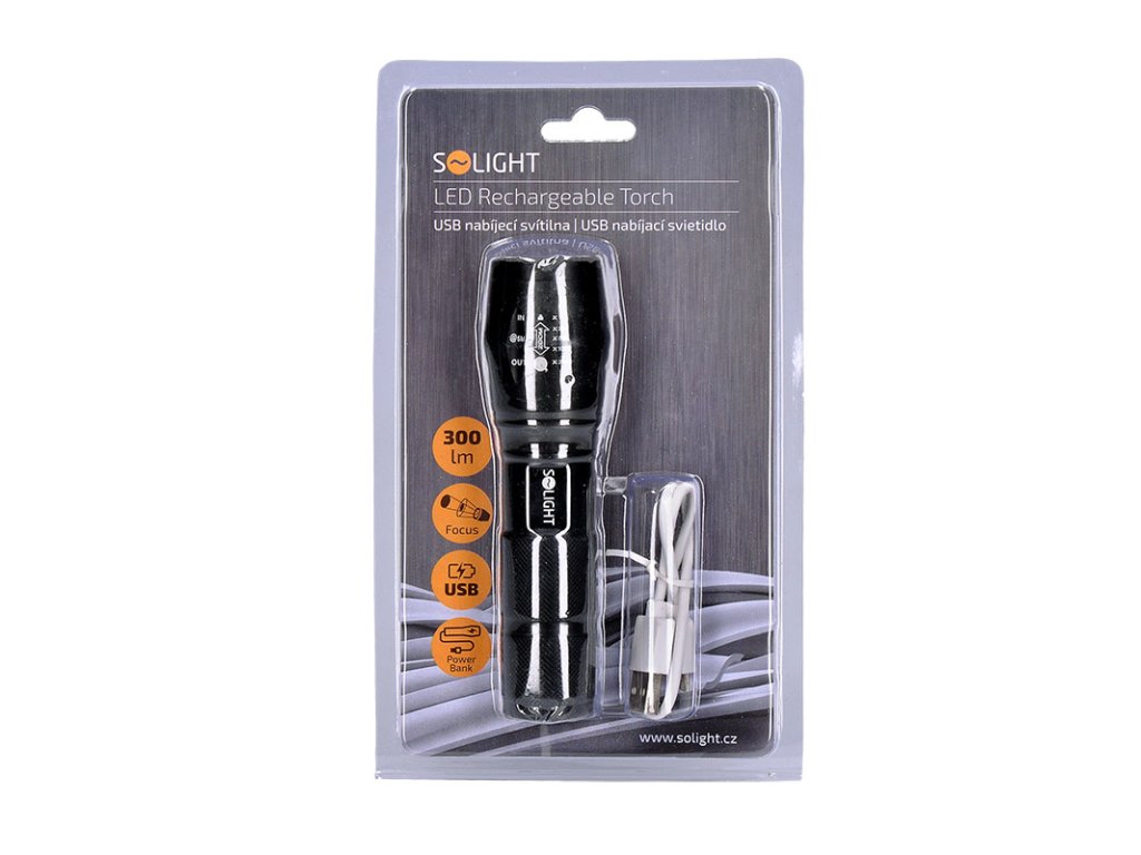 Solight LED nabíjacie svietidlo, 300lm, Cree, zoom, power banka, Li-Ion