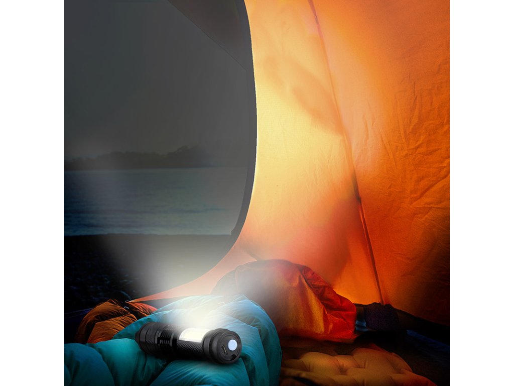 Kompaktná nabíjateľná vrecková LED baterka je ideálna na každodenné použitie doma, na cestách aj v prírode. Má dva zdroje svetla - predný (100 lm) a bočný (70 lm), medzi ktorými možno jednoducho prepínať. Na výber sú tri režimy: 100 % predné svetlo, predné blikanie a 100 % bočné svetlo. Svietidlo je vybavené praktickým zoomom na nastavenie svetelného kužeľa a má stupeň krytia IP44 na vonkajšie použitie. Je napájaná 400 mAh Li-Ion batériou s výdržou 1 - 2 hodiny a dobíja sa prostredníctvom konektora USB-C (čas nabíjania 2 hodiny). Rozmery 100 x 26 mm a čierny dizajn z neho robia praktický a štýlový nástroj. Dodáva sa vo výstavnej krabici po 6 kusoch.