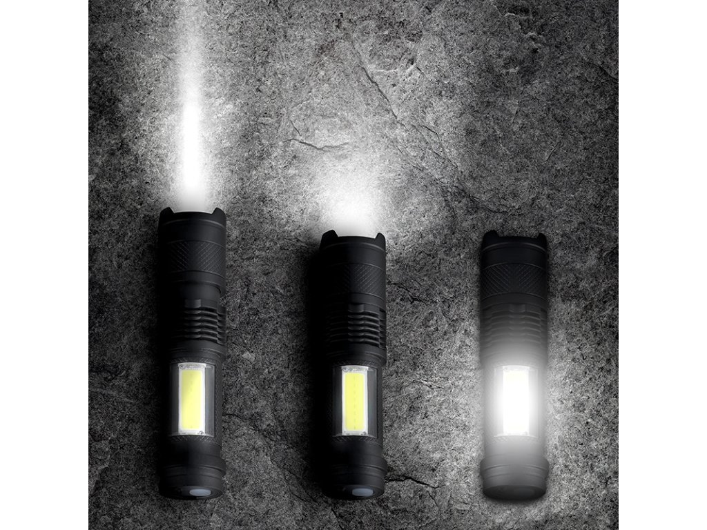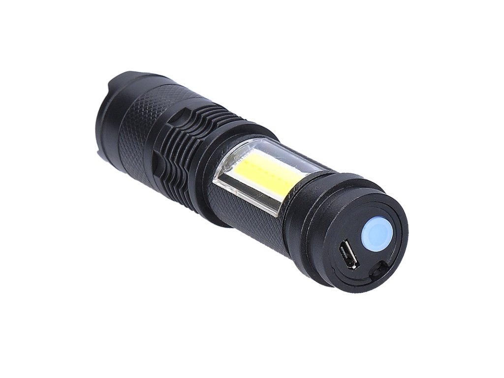Solight LED nabíjacie vreckové svietidlo so zoomom, 100lm + 70lm, Li-Ion, USB, čierna
