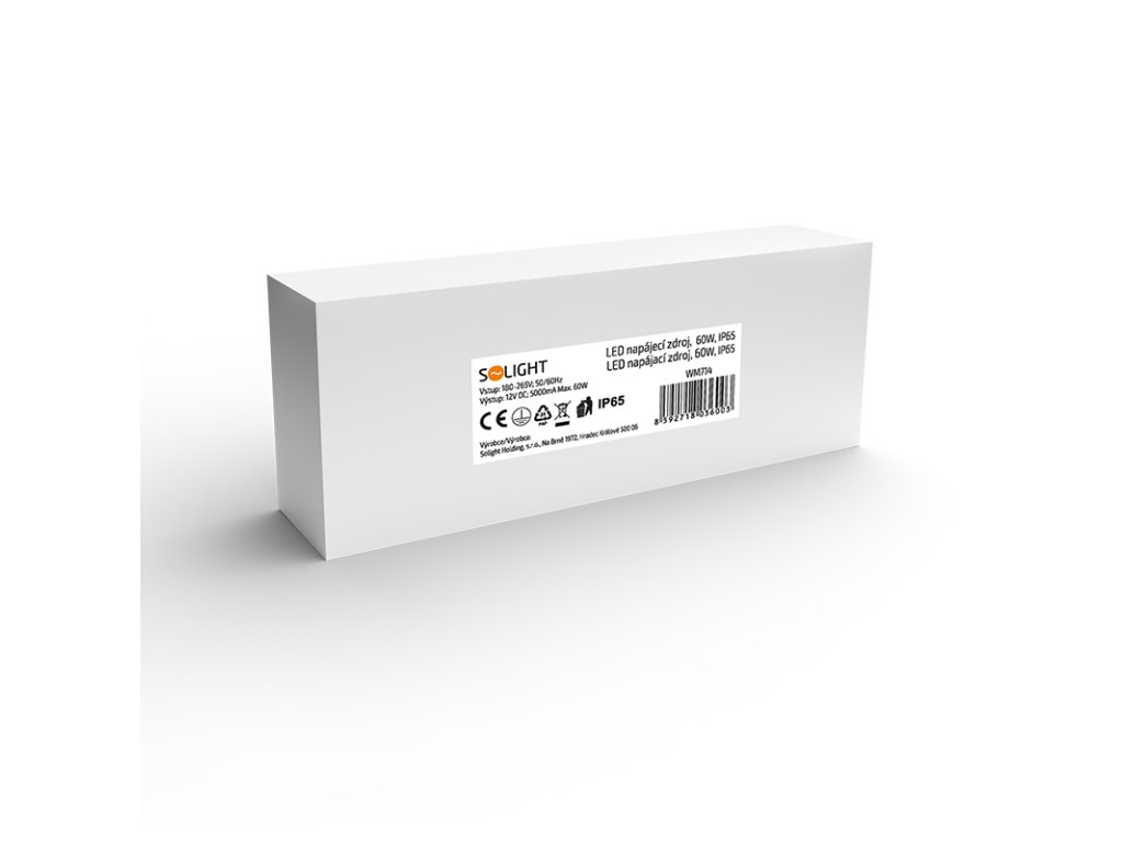 Solight LED napájací zdroj, 230V - 12V, 5A, 60W, IP65