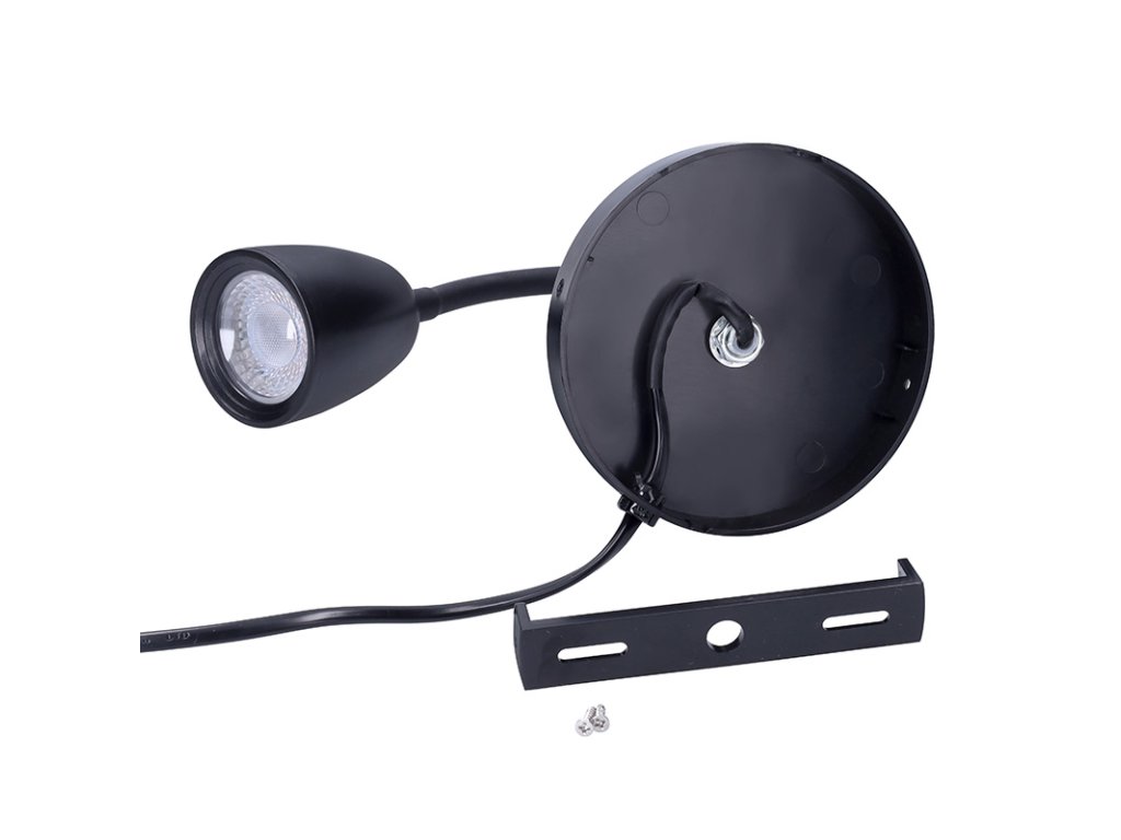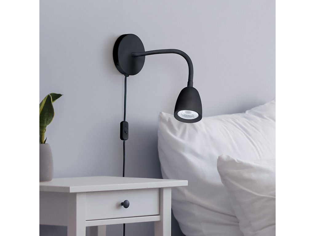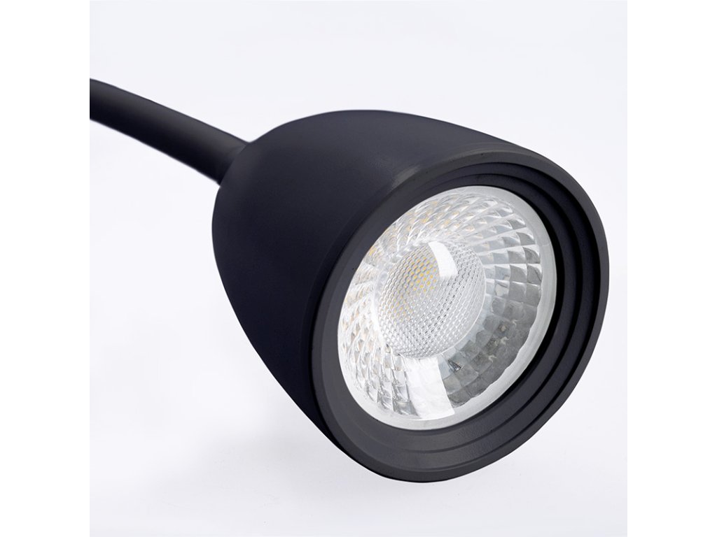 Lampička je napájaná zo siete (AC 220–240 V) a disponuje 120cm dlhou prívodnou šnúrou. Vďaka kompaktným rozmerom 120 x 300 x 75 mm sa hodí na pracovný stôl, nočný stolík alebo do detskej izby. Čierna farba a PVC materiál podčiarkujú jednoduchý a čistý design. LED zdroj je integrovaný a nemožno ho meniť.