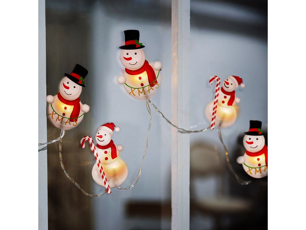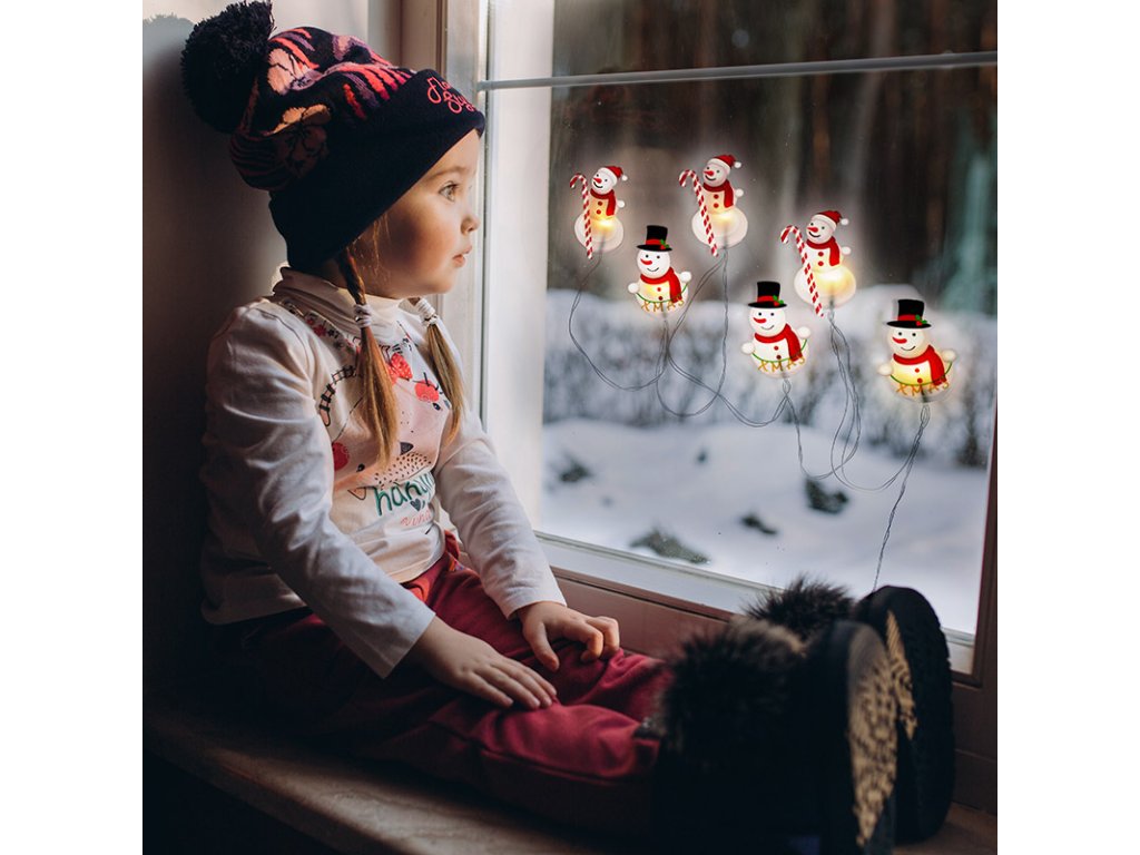 - LED reťaz snehuliaci - samoprísavná okenná dekorácia