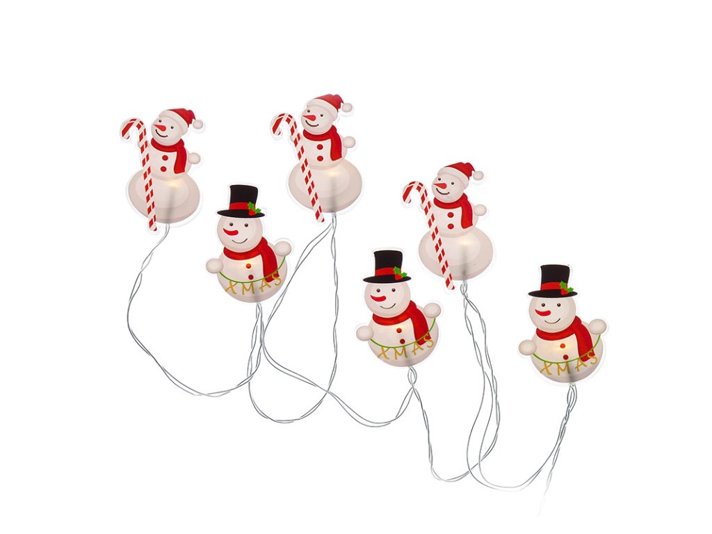 Solight LED okenná reťaz snehuliaci, 6x LED, prísavná, 120cm, 2x AA