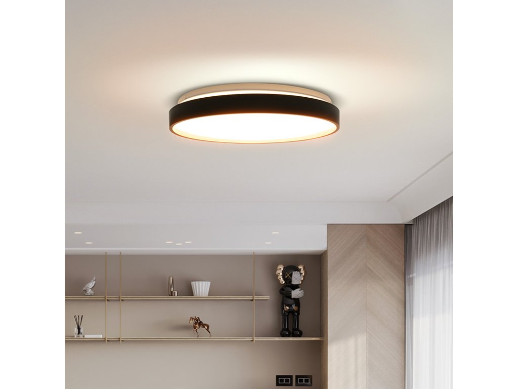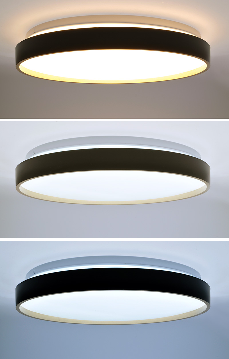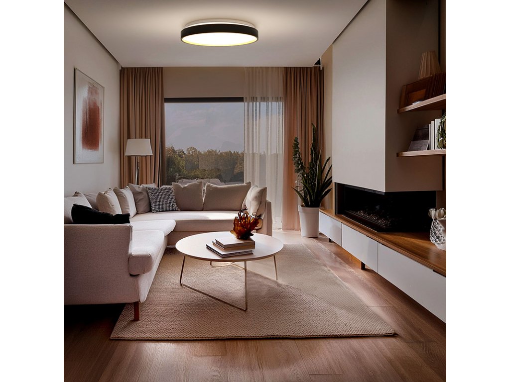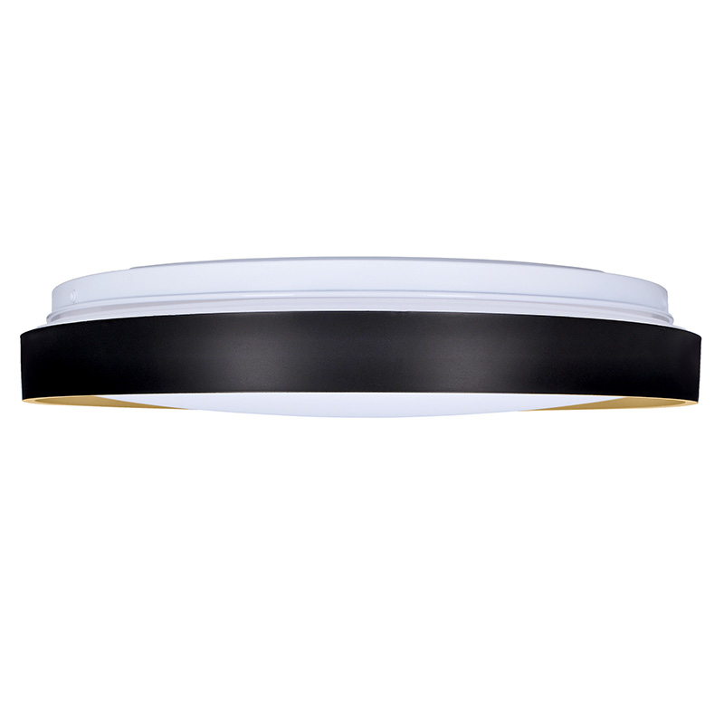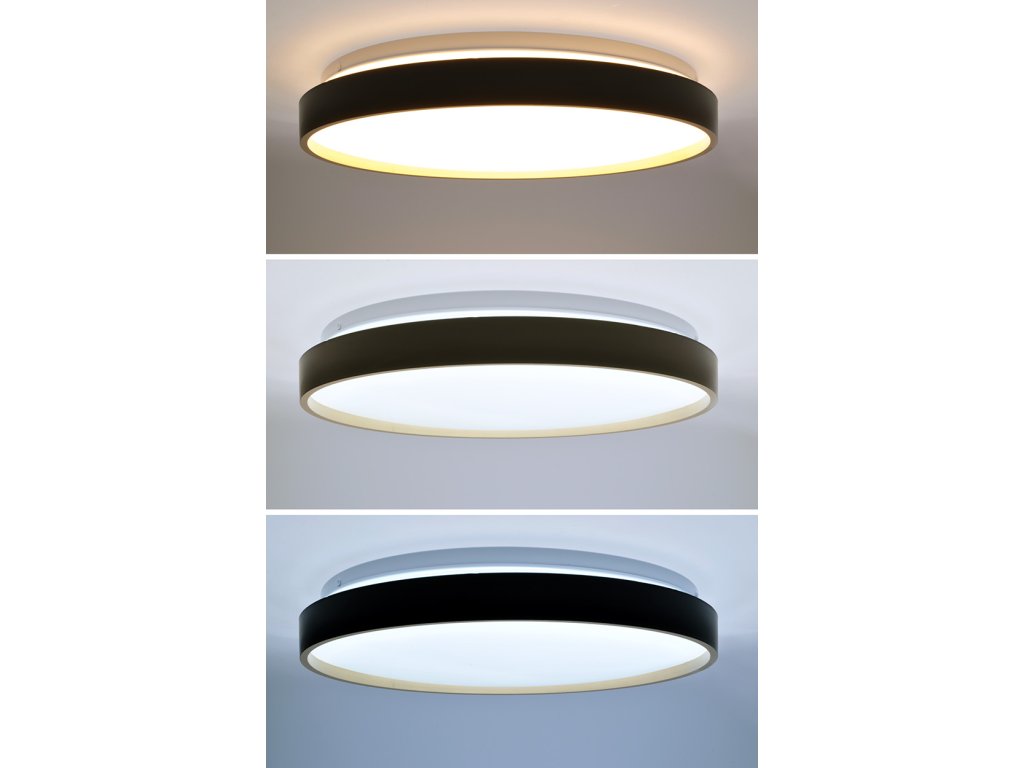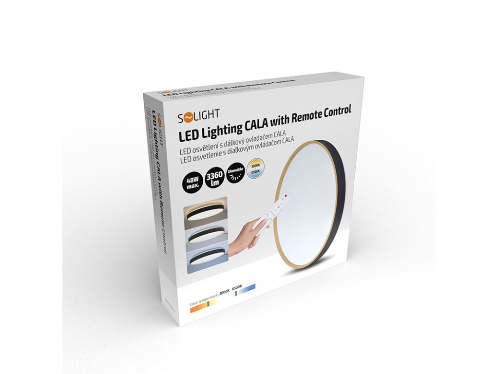Svietidlo Cala LED prináša do interiéru dizajnový kontrast vďaka kombinácii čiernej a zlatej farby. Diaľkové ovládanie umožňuje prepínanie medzi teplotami svetla 3000K, 4000K a 6500K vrátane možnosti plynulého stmievania. S príkonom 48 W dosahuje svetelný tok až 3360 lm (pre 4000K).