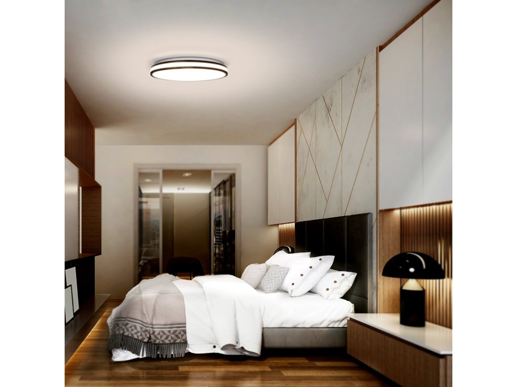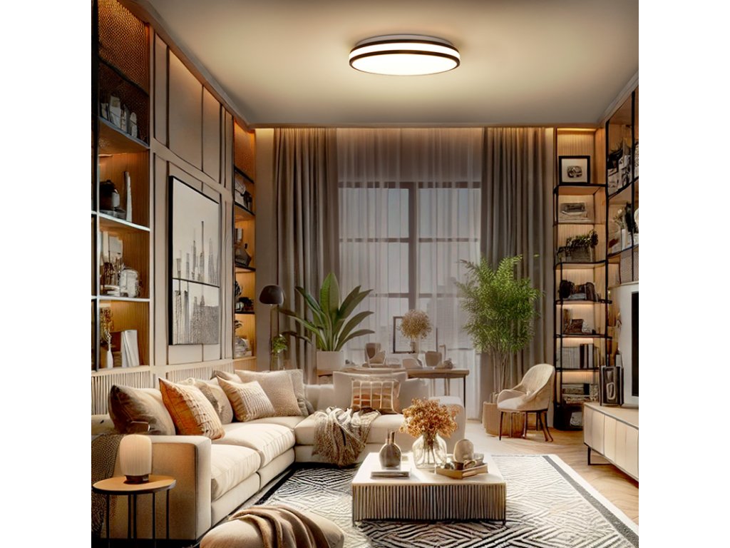 Moderné svietidlo Laskos LED v čiernej farbe prináša plynulo nastaviteľné osvetlenie s možnosťou diaľkového ovládania. Ponúka možnosť zmeny teploty svetla (3000K-6500K) a intenzity jasu. S príkonom 48 W a svetelným tokom až 3360 lm (pri 4000K) osvetľuje priestor rovnomerne a efektívne vďaka uhlu 120°.