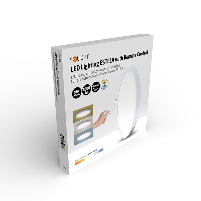 Solight LED osvětlení s dálkovým ovladačem Estela White, 60W, 4500lm, 50cm, změna chromatičnosti, stmívatelné